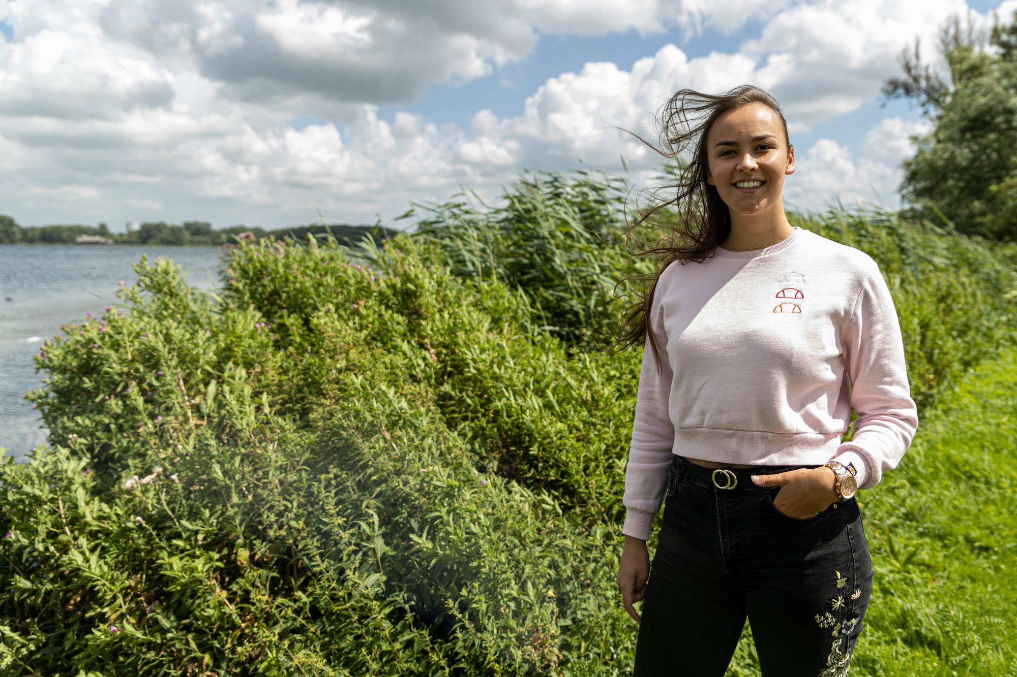 “Whether it’s for a lawa [long walk, ed.], kowa [short walk, ed.], a round of inline skating or just chilling out, I can usually be found here two or three times a week. When my parents come by and I take them to the lake, they also have the impression that I don’t live in the city at all. No noise, no cars. As if you’re living in a village next to the forest. I love that peace and quiet. It’s only when I go shopping in the city centre and cycle along the Blaak that I realise: oh yeah, it’s pretty busy here. That’s great sometimes, but it’s a whole other world.”