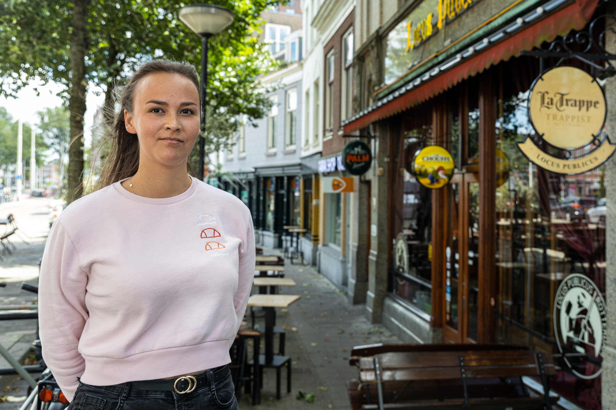 Maayke van der Lelie graduated last year with a bachelor’s in Communication and Media. The 22-year-old is now doing a gap year and has been living in Kralingen for the past three years. On this sunny, windy Thursday afternoon, she is sitting at the Il Capo outdoor café in Lusthofstraat. She lives around the corner, so every five minutes someone she knows says hello to her. “It’s like a village”, she laughs, “that’s how often you run into people you know here. My house is a mixed bunch with members from Laurentius, RVSV, Skadi and people who are not in any student society. This is one of the reasons why I have a large circle of friends and acquaintances. Plus, it gets you out of the bubble of your own student association, which is also nice sometimes.”