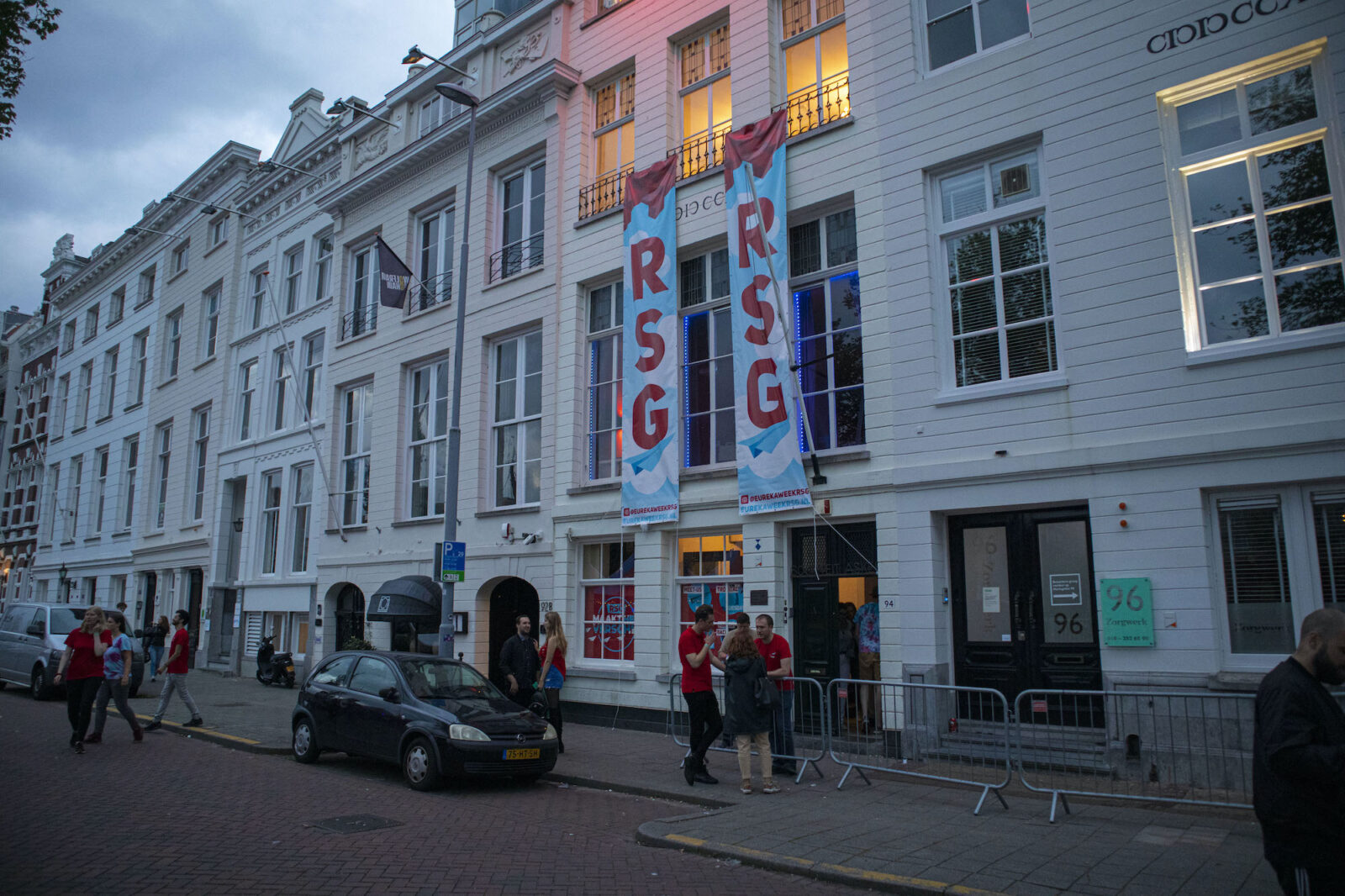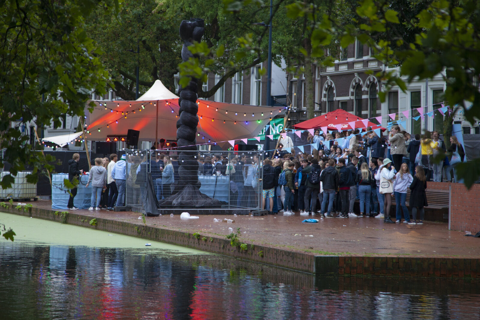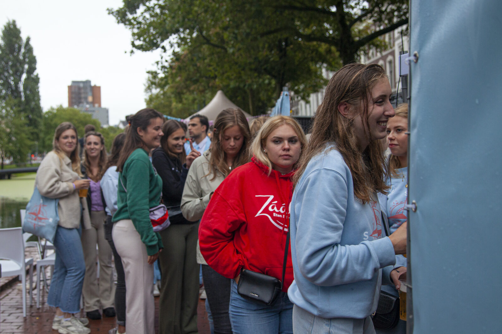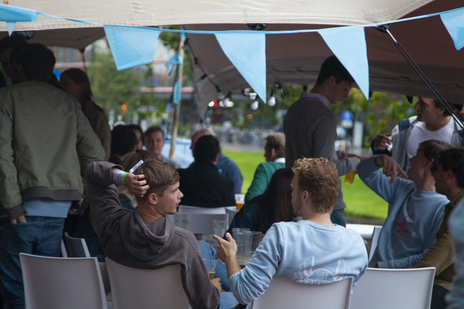 “There was a very strict security check to get in”, said photographer Amber afterwards. “It’s well organised though.” The terrace of RSC/RVSV is for members only this week. To prevent infections among ‘registrants’, president Pita Elhorst says. The participants of the Eurekaweek are able to get a tour through the society, though.