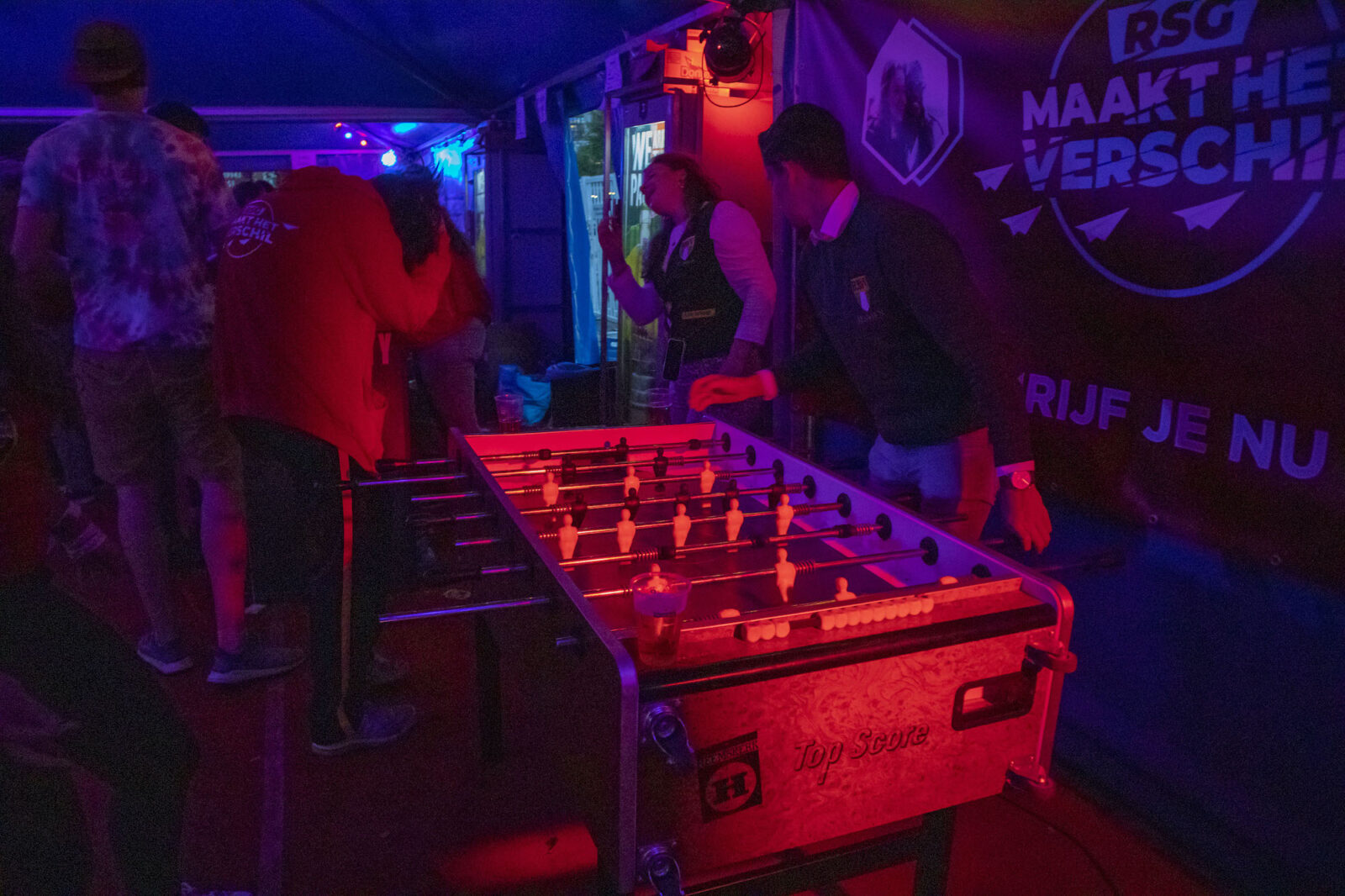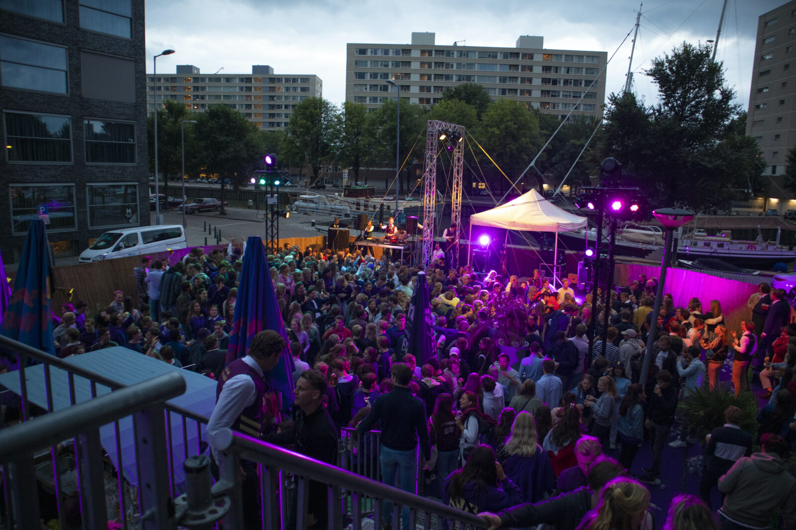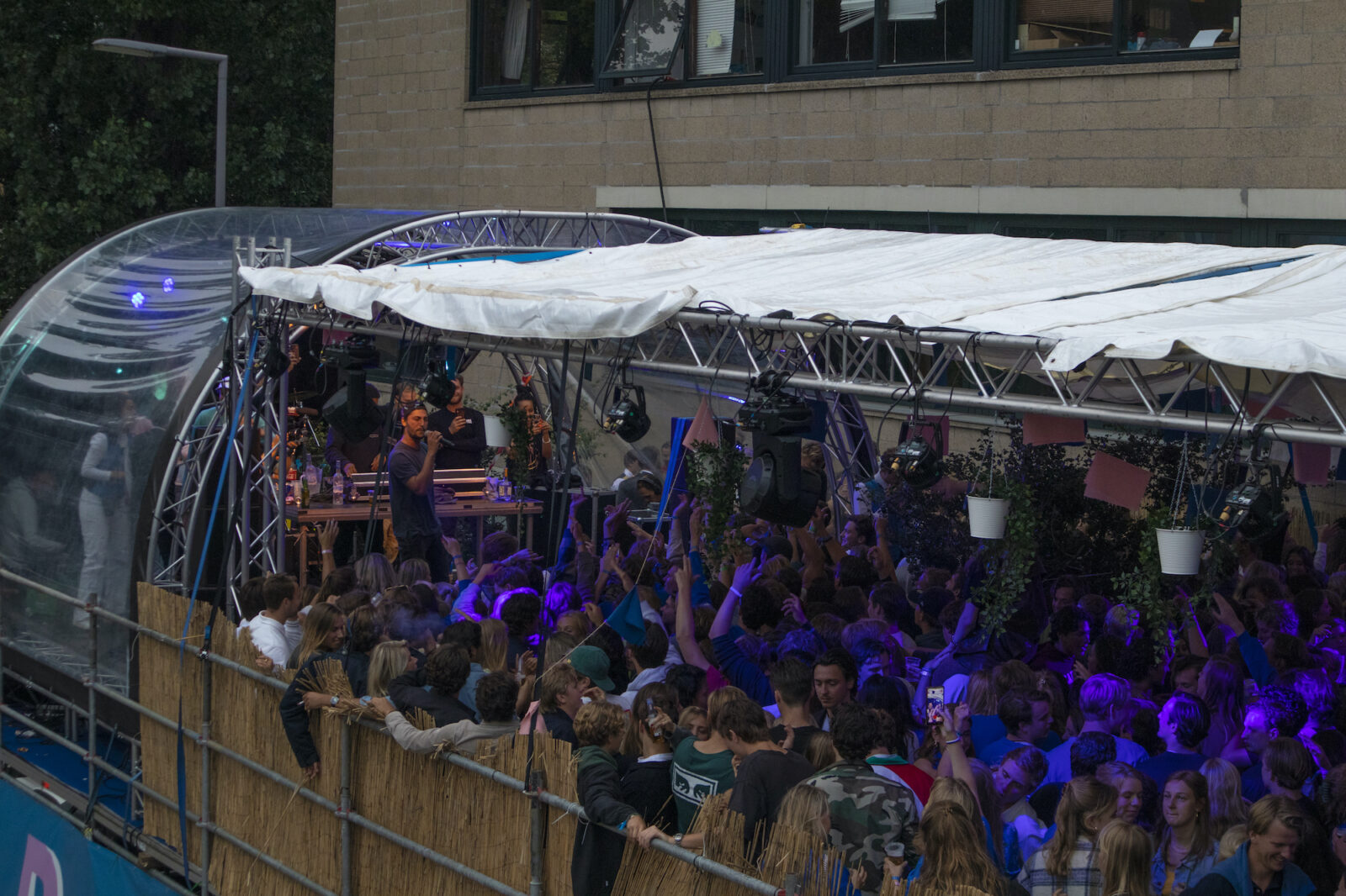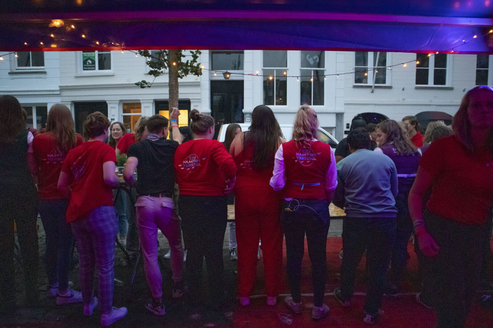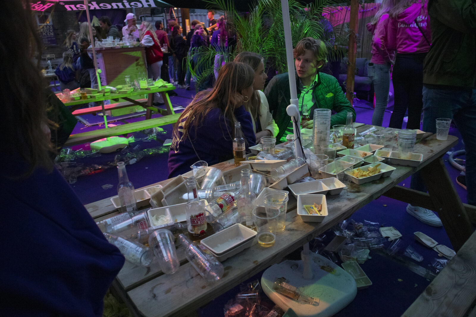 “We don’t need mega DJs to recruit members,” says a member from NSR to photographer Amber. “We always find enough new members.” And the association does indeed get people dancing, because on this silent disco night, a number of visitors go absolutely wild. Elsewhere on the terrace, people are playing cards at a table. The rainy weather is a pity, but what can you do about it?