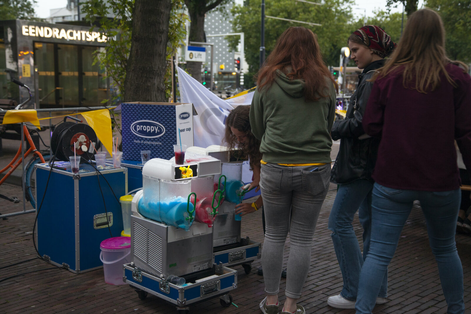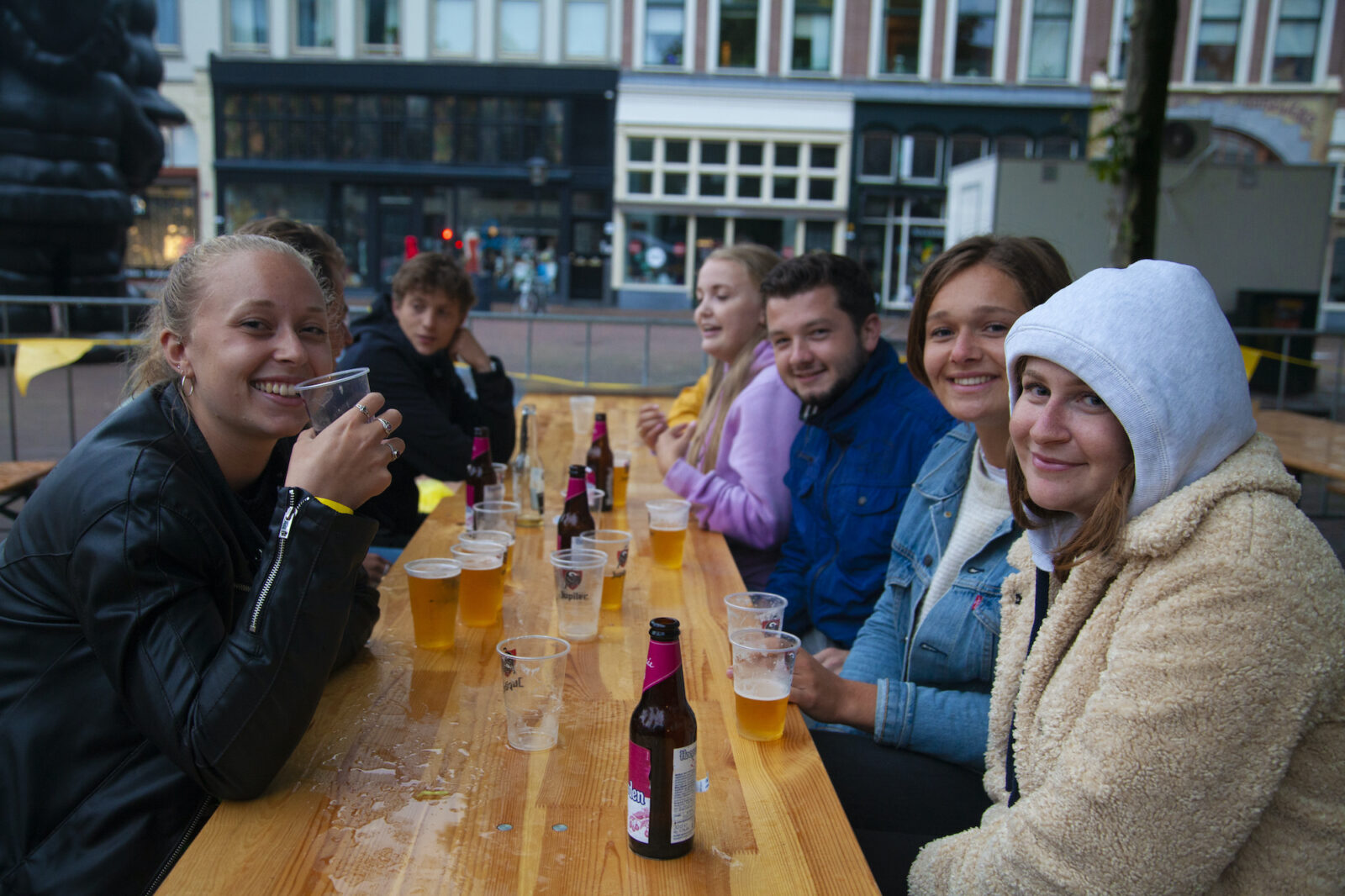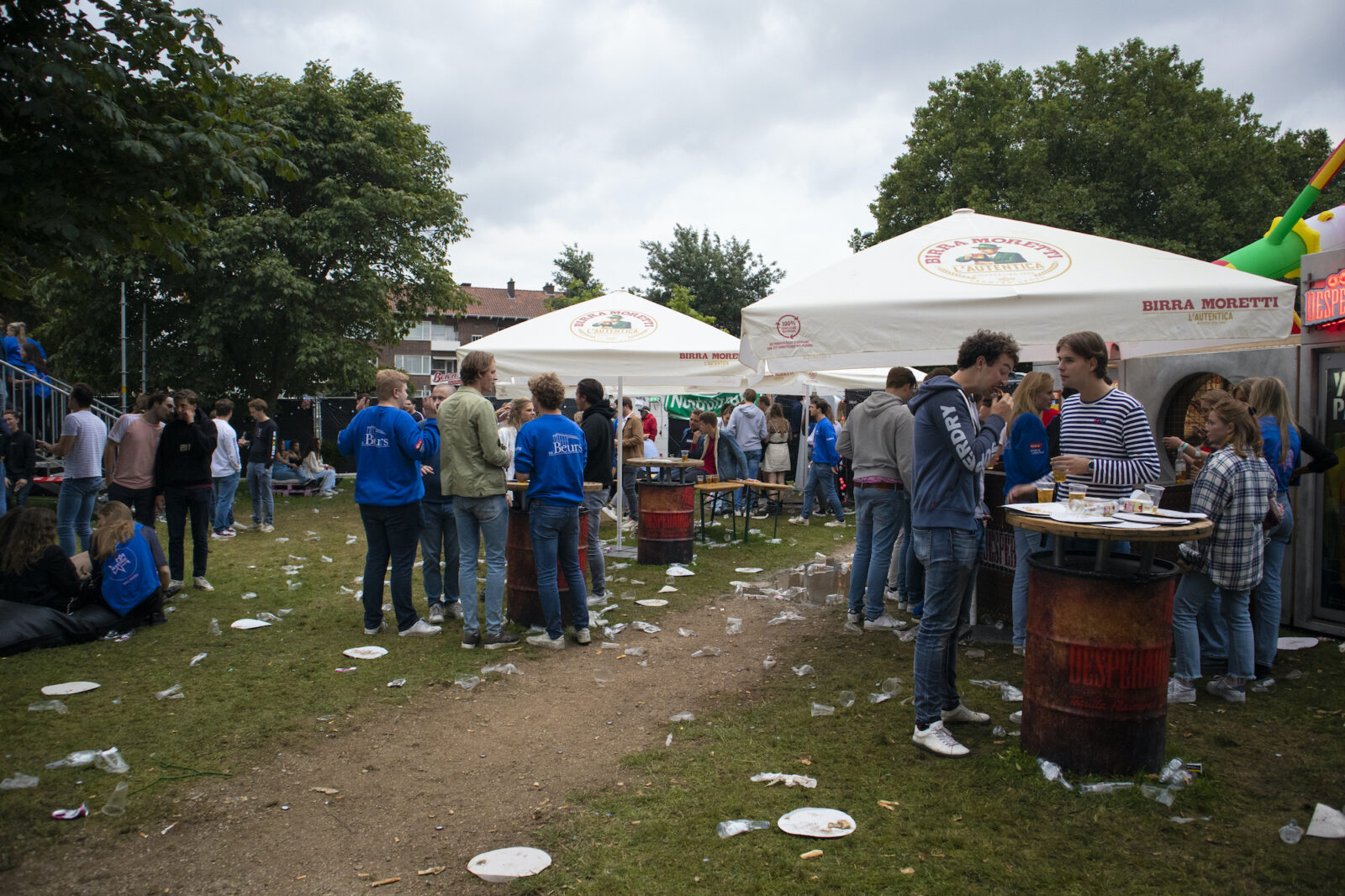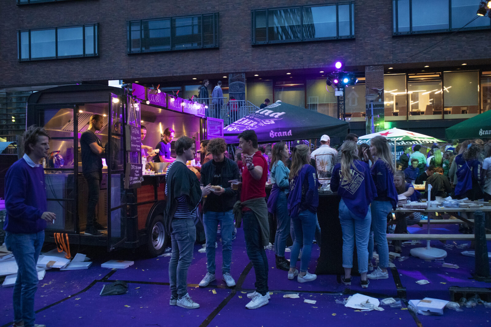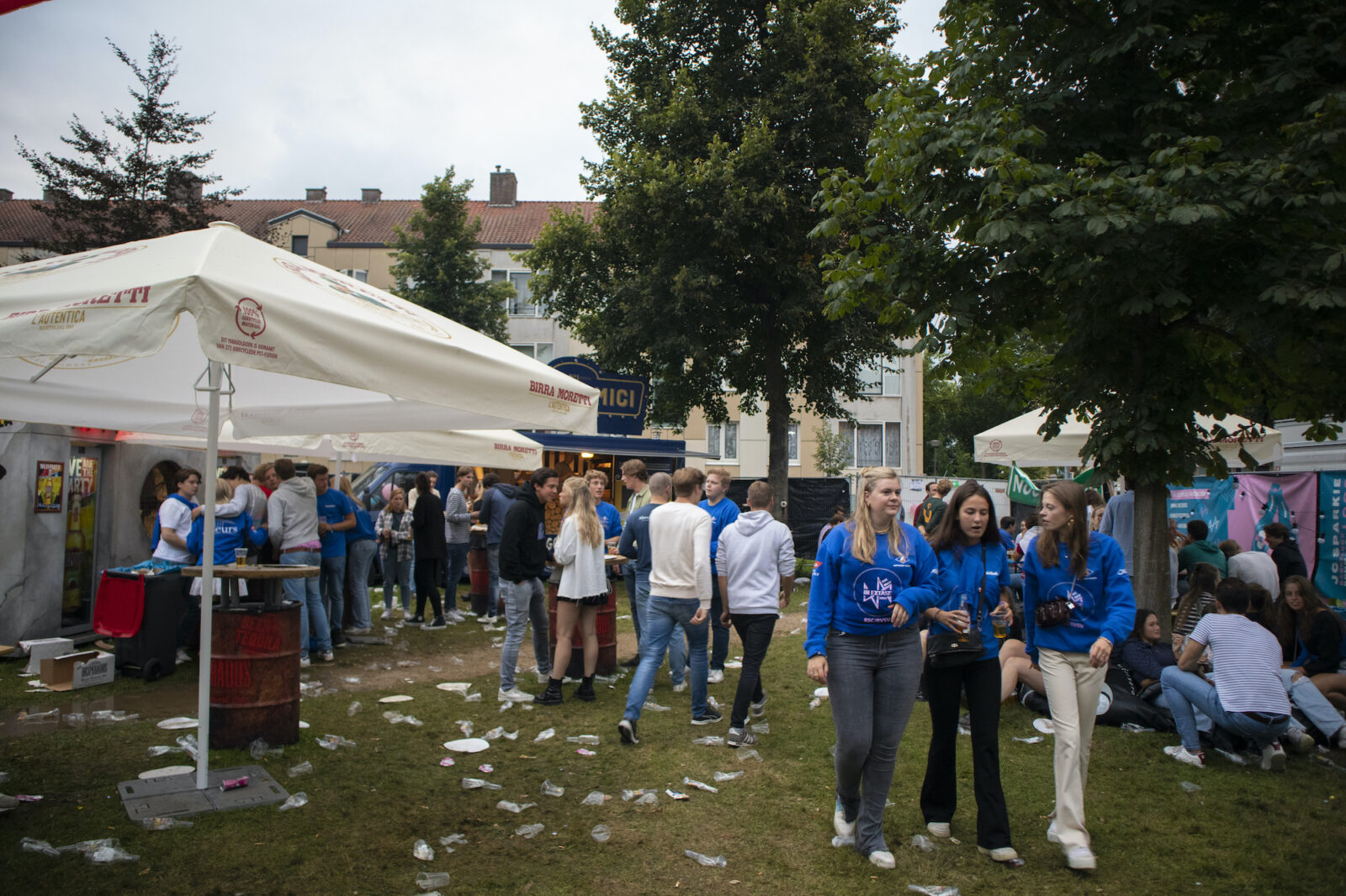 “We don’t need mega DJs to recruit members,” says a member from NSR to photographer Amber. “We always find enough new members.” And the association does indeed get people dancing, because on this silent disco night, a number of visitors go absolutely wild. Elsewhere on the terrace, people are playing cards at a table. The rainy weather is a pity, but what can you do about it?