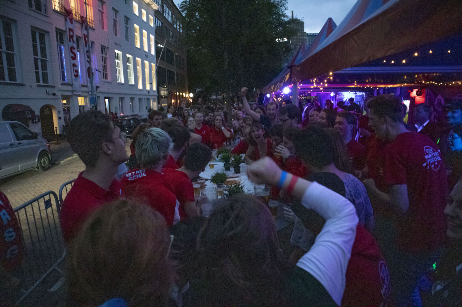 They are extremely happy at RSG, because never before has the membership stop been reached so early in the week.  To celebrate this historic moment, a beer relay competition is organised. Here as well, only RSG members and new applicants are welcome on the terrace.