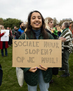 On Sunday, thousands of people, including many EUR students, gathered on Afrikaanderplein to demand a radically different housing policy. They are worried about the lack of accommodation in Rotterdam. “I would love to carry on living in Rotterdam my whole life, but I don’t think I’ll be able to afford it anymore.”