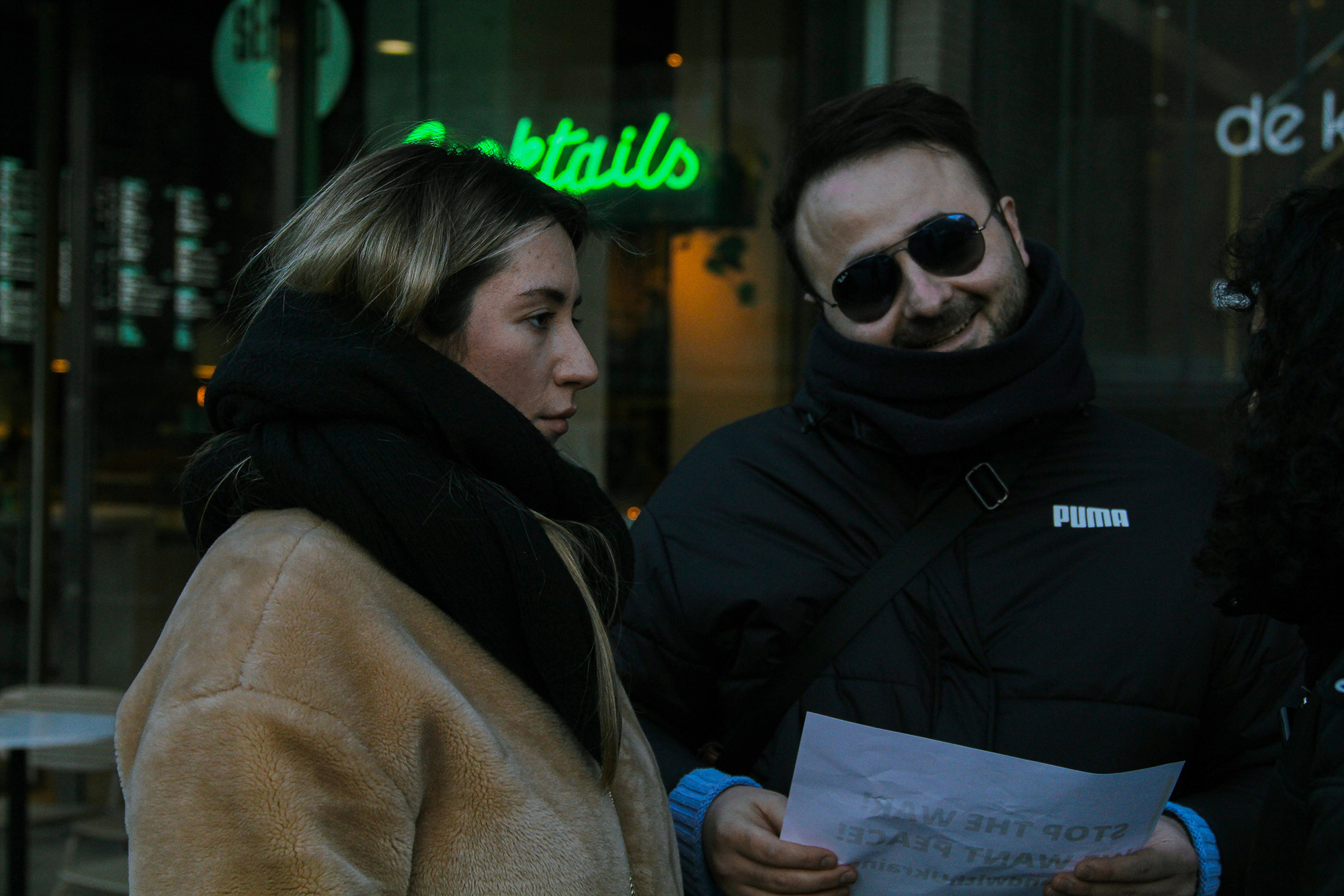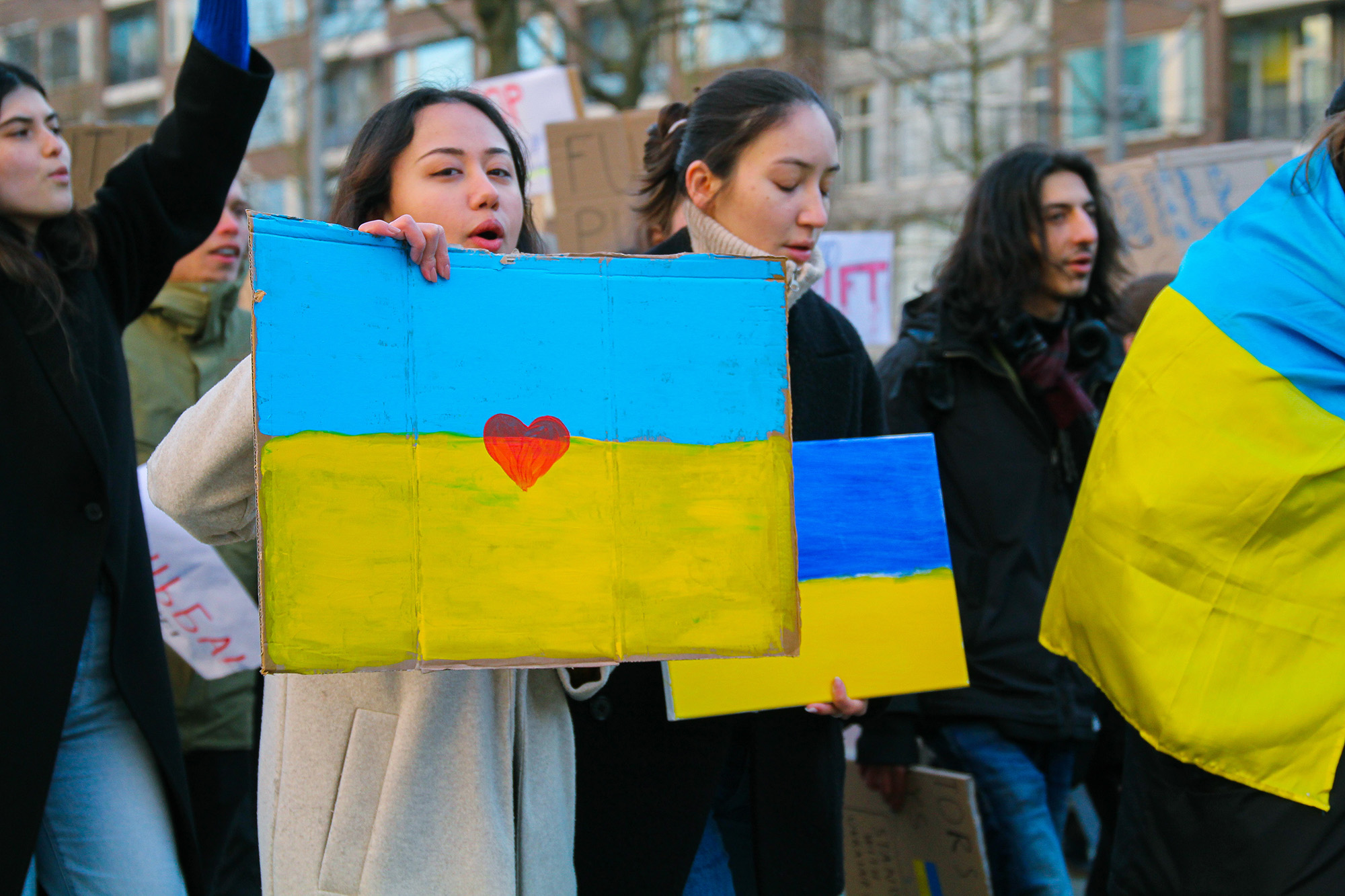 The protest was organised by Tahmine and Nigina, both students at EUR from Uzbekistan. “Rotterdam has such a big population, and no one was doing anything. Coming from a post-Soviet country, you can’t help but feel for someone taken over by Russia”, said IBA student Tahmine. Both have family and friends in Ukraine currently and wanted to show solidarity.