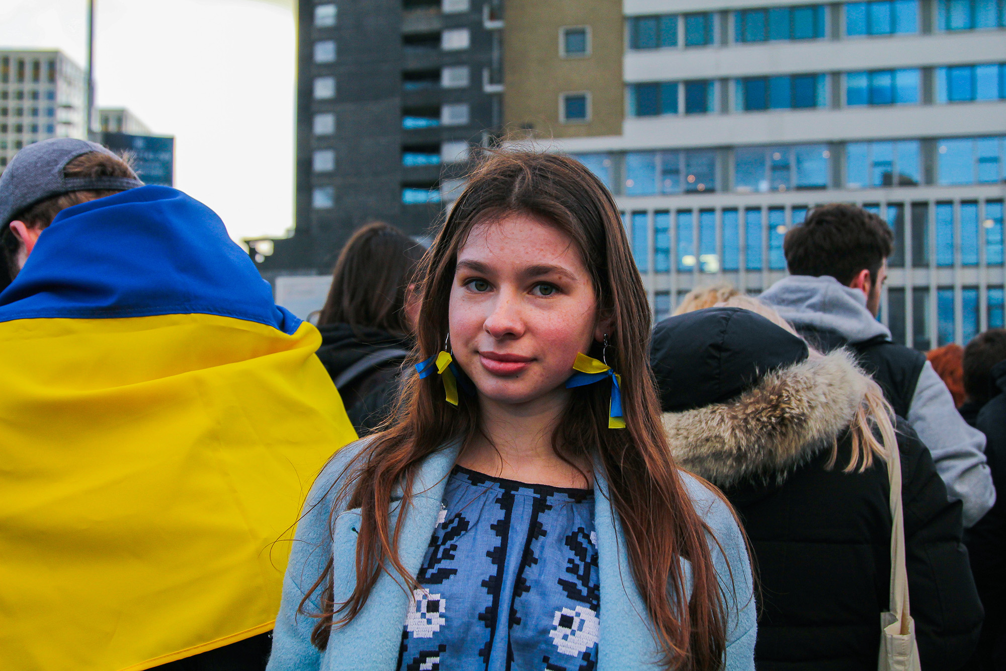Walking alone and representing the Ukrainian blue and yellow by wearing an overcoat and festive streamer earrings, Iryna Matsiuk from Ukraine felt overwhelmed with emotion. The first-year Econometrics student walked with her cheeks flushed: “I just can’t believe this is real, Kyiv is my city, the city I grew up in. And my parents are there, my family, all my friends.”