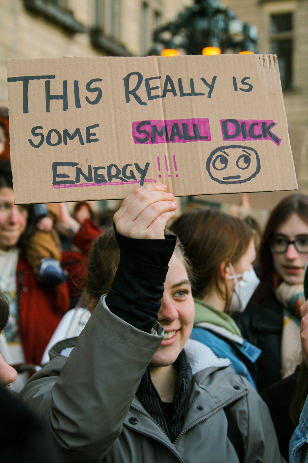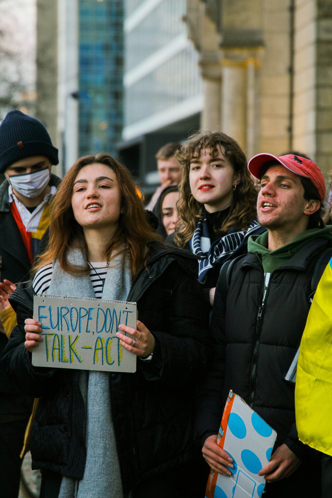 Bystanders and cars passing by showed solidarity by honking and raising their fists in the air. Once the crowd reached the Erasmus bridge, all protesters faced the street and held their signs high while shouting rhythmically ‘save Ukraine’.