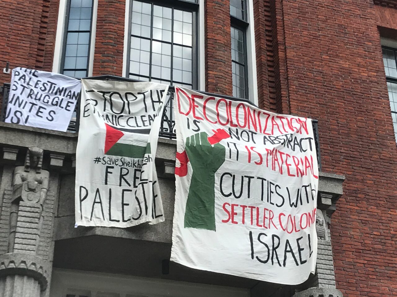On Tuesday the students held a sit-in at campus Woudestein. This protest was aimed at the EUR. Last year, the university did not want to condemn Israel’s actions when the Gaza strip was being bombarded and Palestinians were being forcibly evicted by Israel. The Palestinian flag and pro-Palestine banners were not permitted to hang as a protest on the façade of the EUC. The university’s policy would not permit the building to be used for political statements.