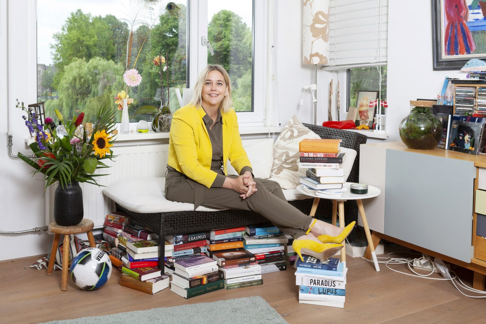 Jensen lives with her daughter, who attends primary school. Children’s drawings adorn the walls, and there is a football on the floor. “Sometimes we are just like children, except our toys are larger,” she says, quoting Erasmus. In addition to many works of popular science, the author has also written children’s books, such as Filotective, which introduces young readers to famous philosophers and their ideas. She has also spent a lot of time reflecting on child nurturing. She wrote two books about it, in association with her colleague Frank Meester. In Hoe voed ik mijn ouders op? (‘How to raise your parents’), young readers are told how to raise their parents, while De Opvoeders (‘The Educators’) explains to parents how to raise their children.
