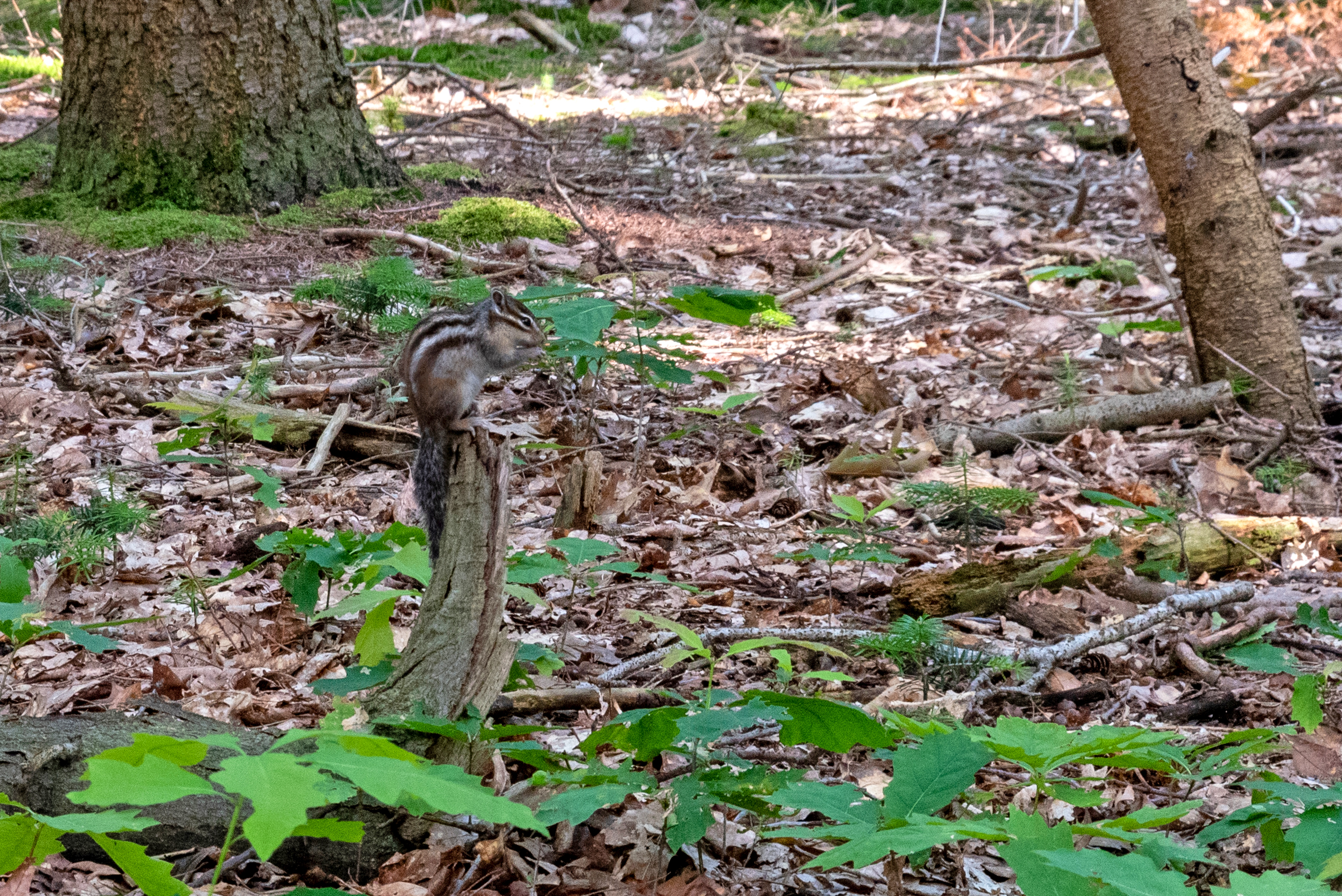 In spring and early summer, you’re almost deafened by the birds, so great for the birdwatchers among us. And there’s something for those who prefer something furrier too. There are two species of squirrel which are easy to spot here. To see the red squirrel with its beautiful bushy tail, you need to look up, have a bit of luck on your side and keep quiet. The other species, the Siberian chipmunk, can regularly be spotted next to the path clambering over branches and fallen trees, and is not shy at all.