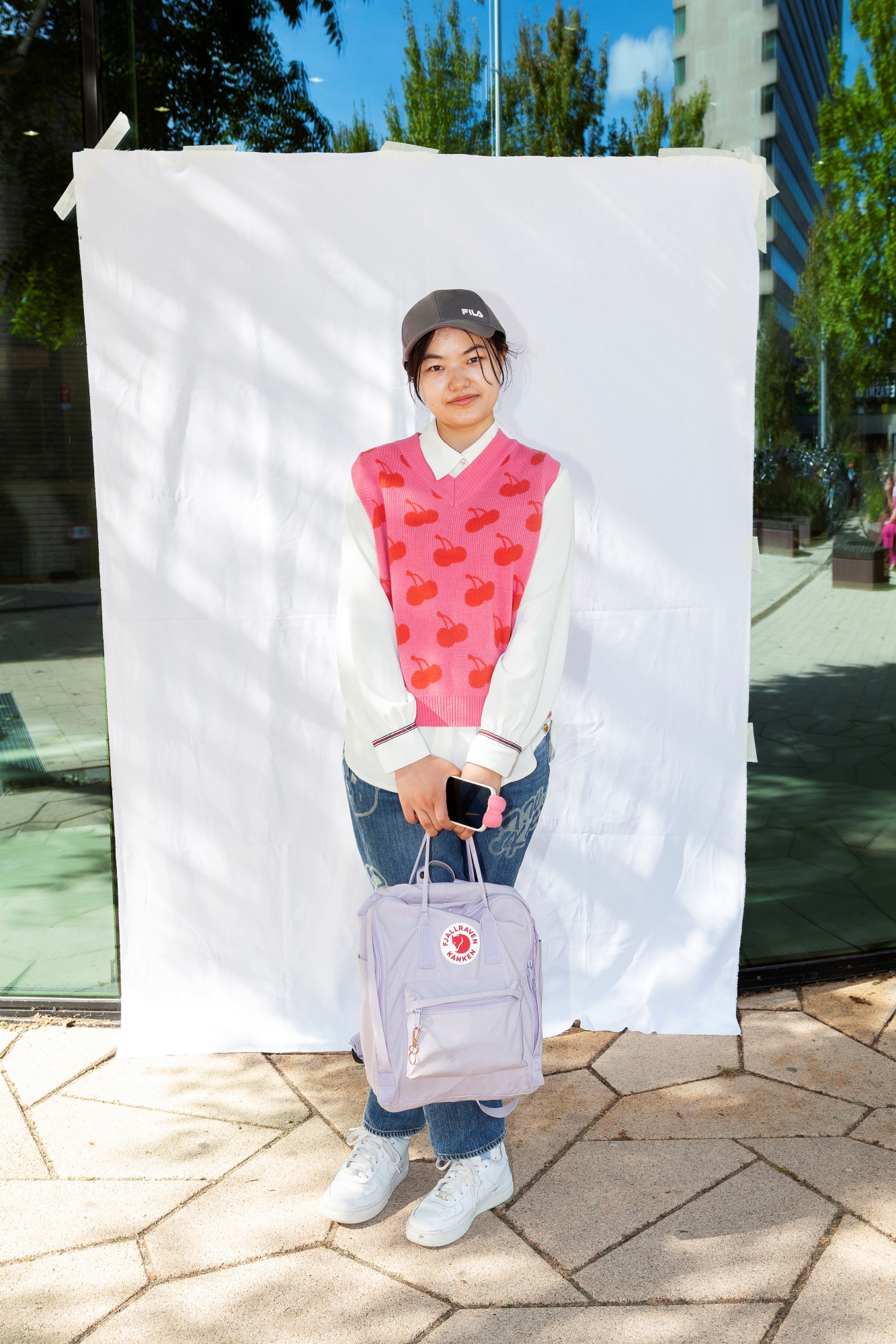 “This outfit makes me feel cute and happy. I’m not a morning person, and picking an outfit helps me get out of bed. A new day means a new outfit and new energy. I select a phone cover to match my outfit whenever I can. Today, the red cherries on my phone cover match those on my vest. I might wear something more businesslike for presentations, but I always make sure there’s a cute detail.”