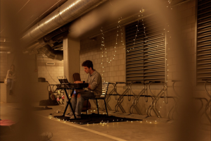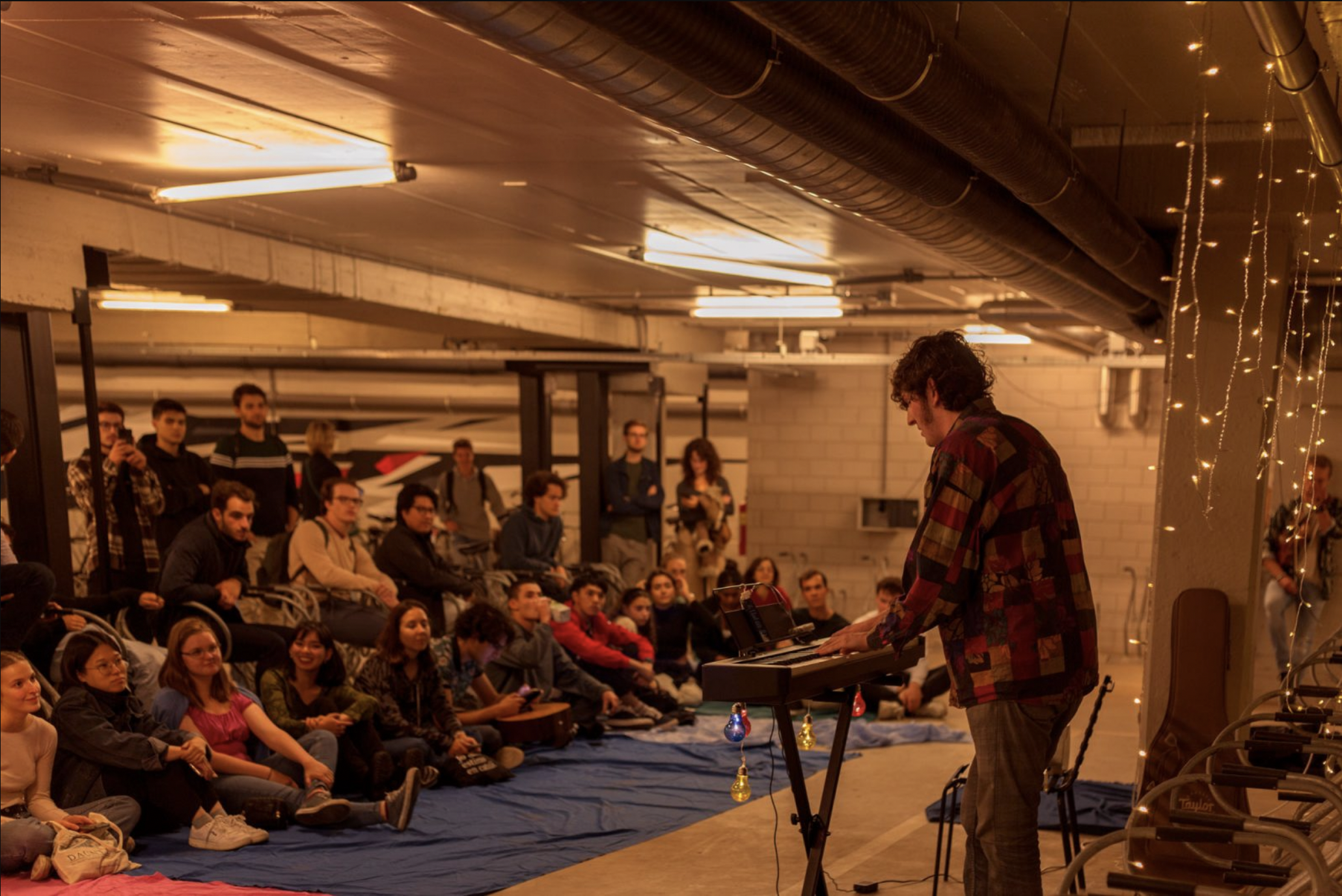 At 7 p.m., the first musicians are already playing in between the bicycle racks. Blankets are scattered on the ground for the spectators, and a keyboard stands at the back with lights draped all around. This instantly gives more atmosphere to the dark bicycle garage. Psychology student Catalina Kiru is practising her violin in a corner. She is the reason why the musicians have gathered.