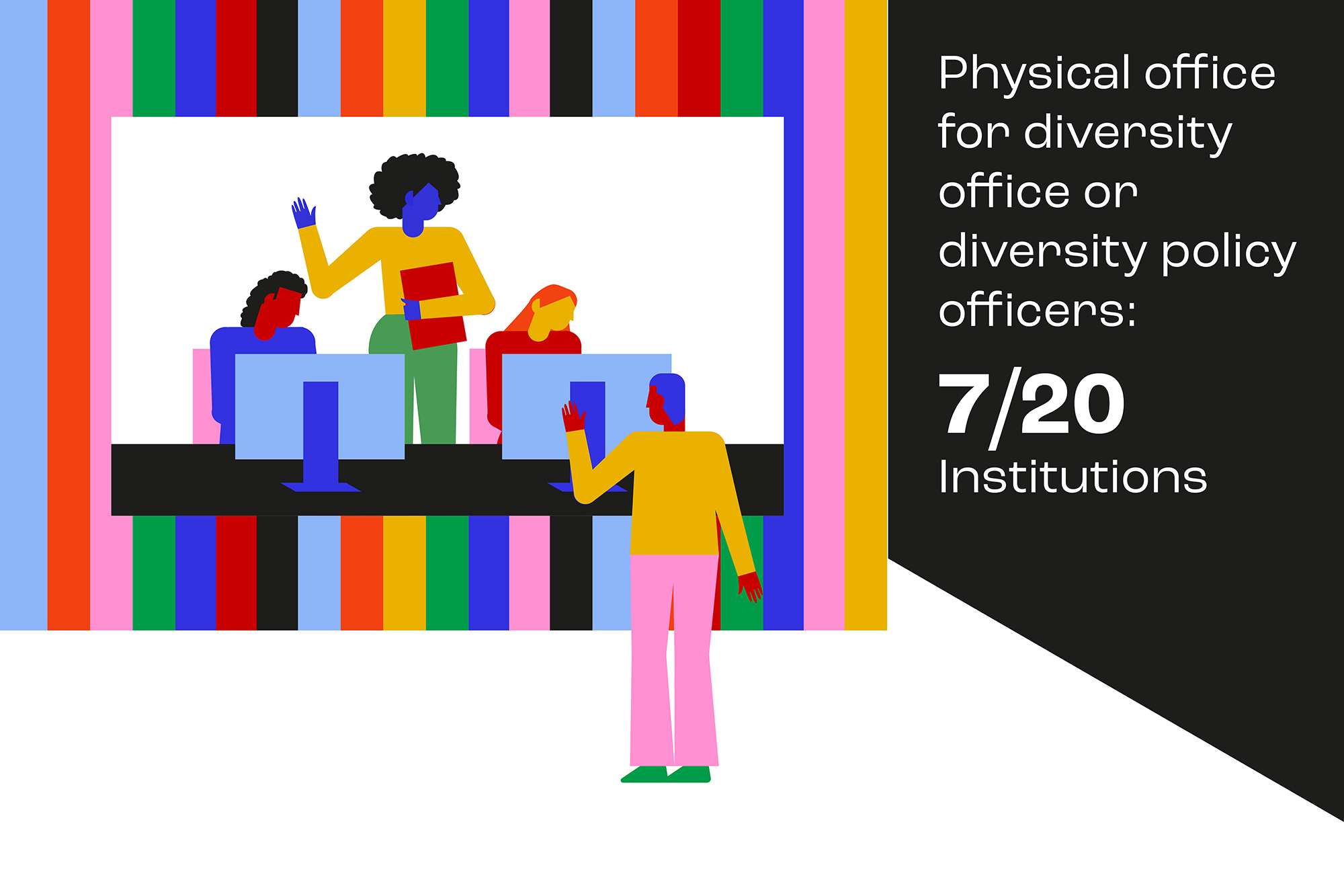Each institution has organised its diversity policy differently. Diversity officers often form part of an HR or student affairs department. Of the twenty institutions, seven have a separate, recognisable space for the diversity office. Erasmus University is one of them, the diversity office is in the Erasmus building.