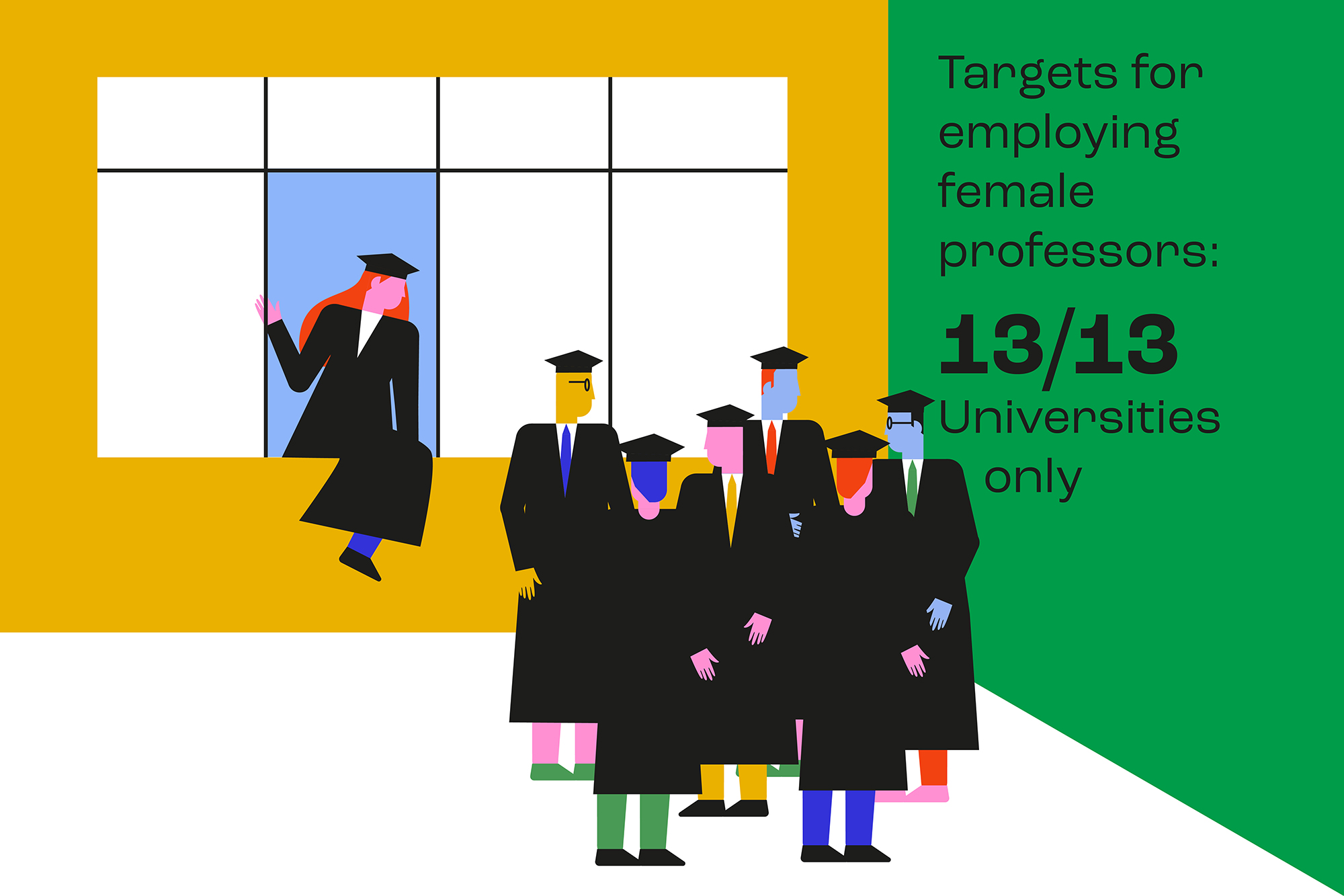 These figures only apply to research universities, not to universities of applied sciences. All 13 universities have target figures for the appointment of female professors. Only Eindhoven University of Technology also has a quota of female professors who must have been appointed by a specific time. Erasmus University’s target was 25 per cent by 2025. That was already met by the end of 2020, so now it has been adjusted to 35 per cent.