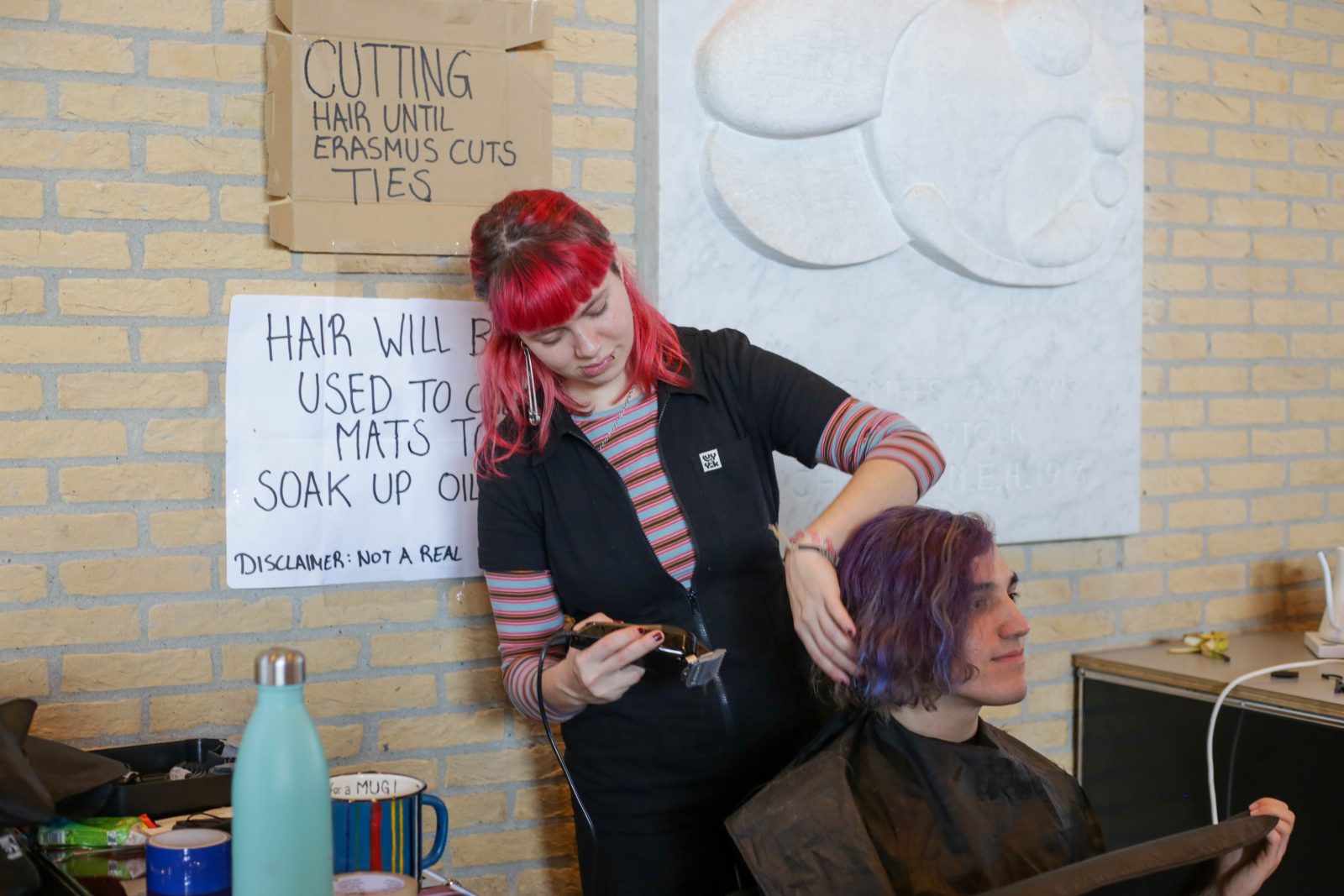To pass the time, the activists have planned several activities, including workshops and music performances. Thea Bradley is present as an amateur hairdresser and is just finishing her fourth haircut: “I do haircuts more often as part of my activist group University Rebellion. For me, it’s a way of taking care of the community.”