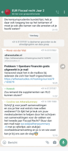 The groups serve as a forum for students, for example to discuss upcoming exams or assignments. But the company is also using the groups to promote its own services. Students will share an advertisement for the company, for instance, or send a message saying there are still ‘a few places’ available in a course. Surreptitious advertising also occurs. Students will say that they’ve greatly benefited from a course, for example, without it being clear that they are being paid by AthenaStudies.