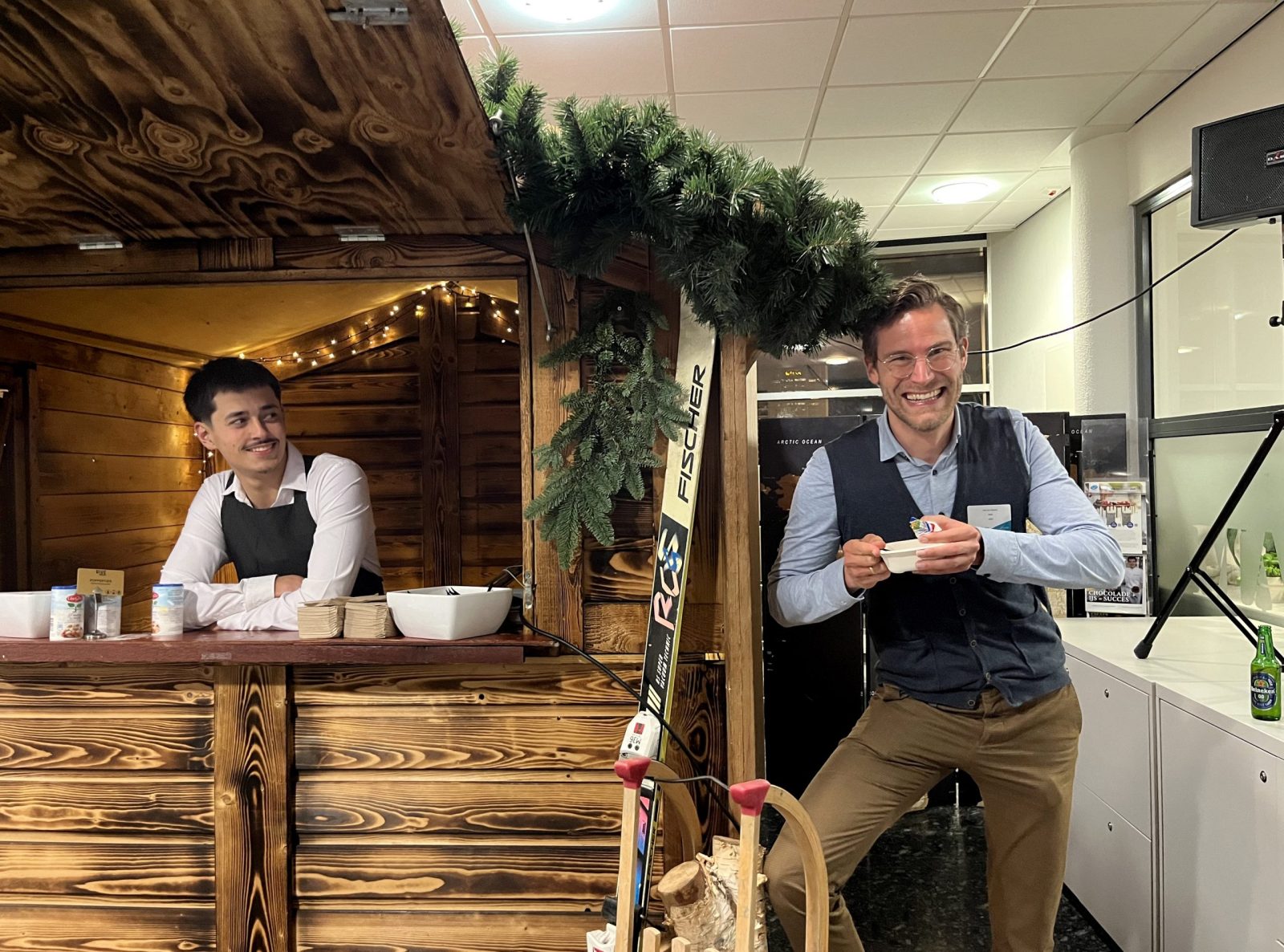 Sam got to know the association during the Eurekaweek and then ended up at one of the drinks parties. “I liked it so much that I became a member right away. It’s an open group, they’re a lot of fun and I’m having a great time drinking and talking.” He does not expect there will be any dancing. “Perhaps if the music gets a bit more hip and happening.” At this point, the music is varying between hits by Abba and Lady Gaga.