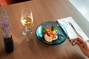 She can now give free rein to all her creativity in the kitchen of the brasserie. She shows a photo of the dish she most enjoys making: kohlrabi with tarragon dressing, a kind of colourful work of art with mandarin orange, thinly peeled radish, radicchio and deep-fried kohlrabi leaf on a chic blue plate. “It’s cool that I also work on decorating dishes here,” she says. “When I serve something, I’m proud of what I’ve made.”