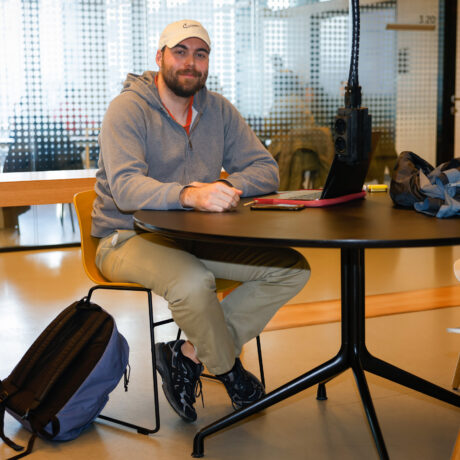 Simon wears the cap he got from his girlfriend