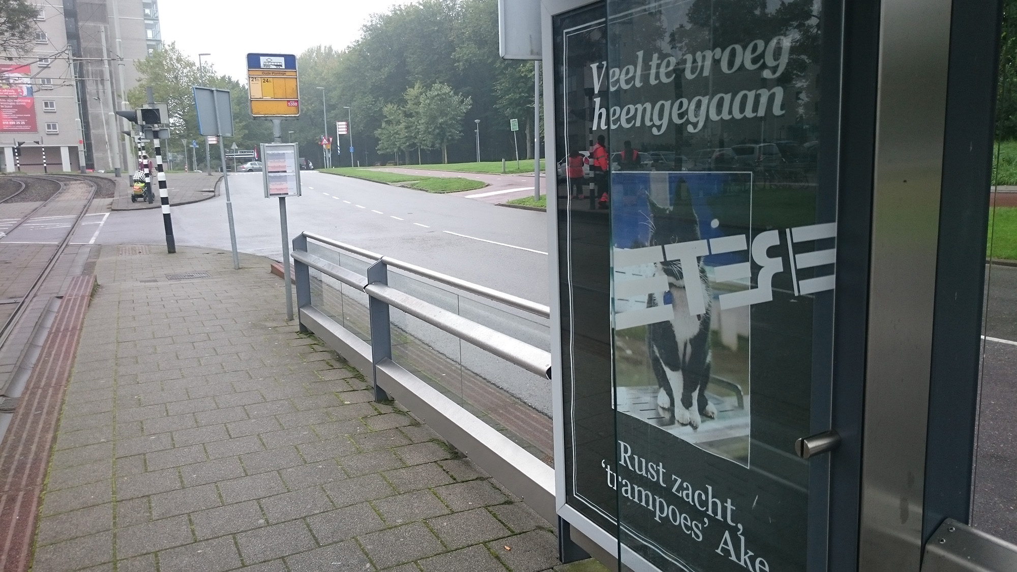 Tram cat honoured with obituary poster at Oude Plantage tram stop
