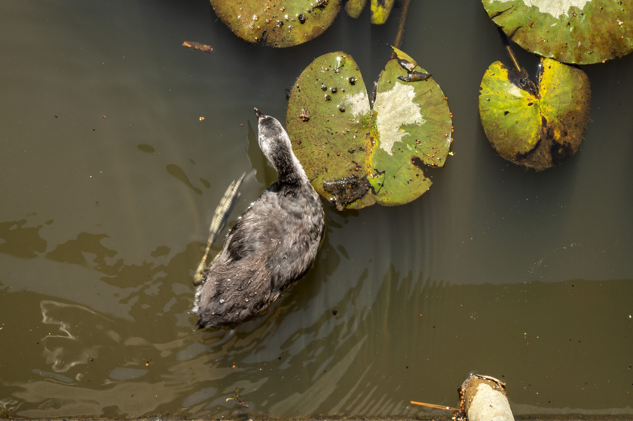 Humans, on the other hand, should probably not swim in the water, says Bakker. Rats are also regular visitors to the pond and use it as a toilet, so it’s probably not very hygienic for humans. Thankfully the moustached carp is not bothered at all.