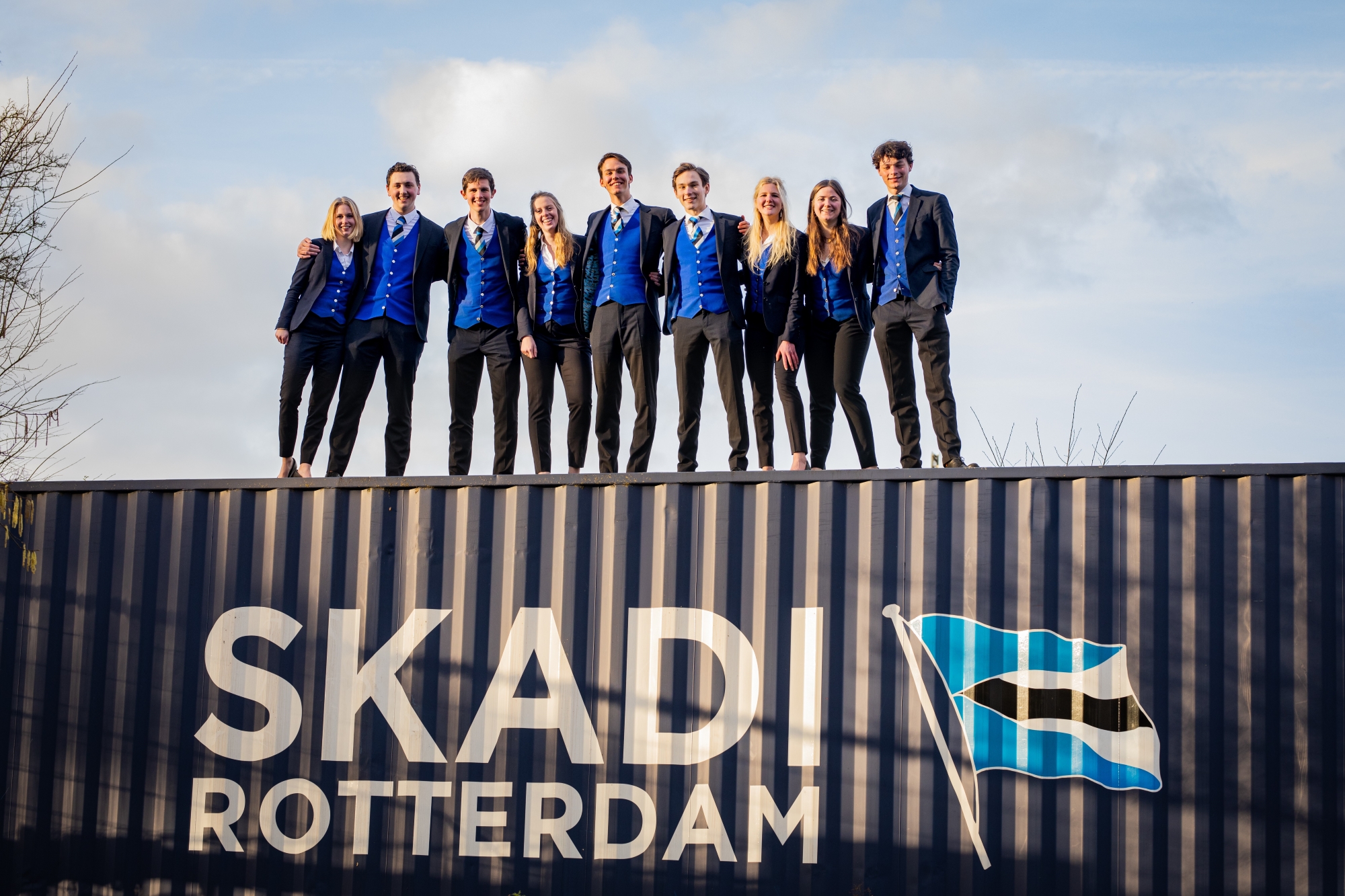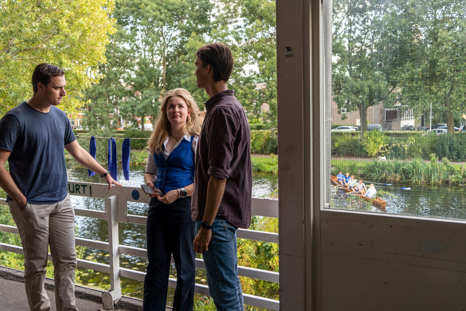 On slightly worn benches, one blue, one brown and one wooden, twelve students sit in a circle. They are the Skadi committee in charge of the Rottebokaal (the Rotte Trophy), the biggest rowing competition organised by the student rowing club. Two thousand people lined the banks for the last edition. A wispy, young apple tree is part of the crowd that is wandering around.