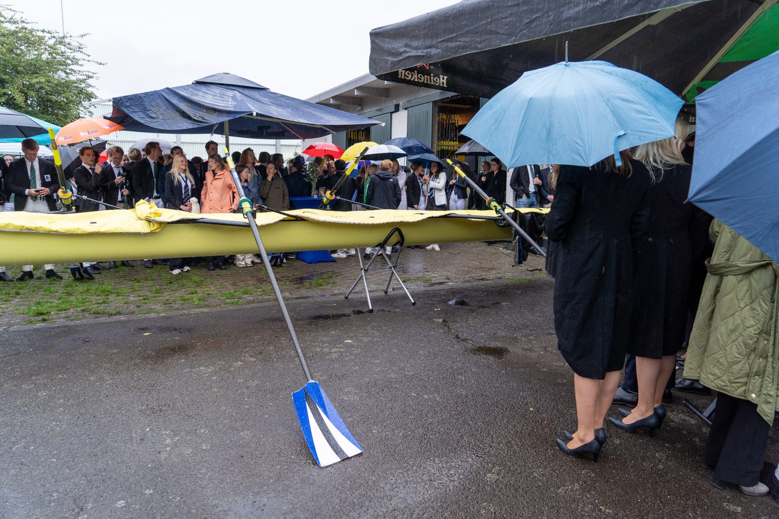 A year after the death of board member Niels van Rooijen, the rowing club, Skadi, has named a boat after him. It is a boat for eight rowers, the most prestigious category in rowing. Last Friday, the boat was christened in the presence of Niels’ family.