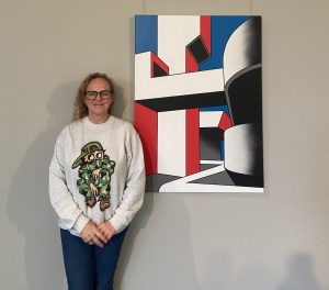 Right now, La Rock’s exhibition is being hosted in the art gallery in Erasmus building, where more of her work is presented. As a kid from the brutalist era, her art is heavily influenced by the artistic aesthetics of the 1970s, as well as modernist paintings. Her inspiration for this style came from the letters she would use in her graffiti: “I started molding my letters into more brutalist shapes, and cutting out elements of the letters to be either used as a line or negative space”, she says.