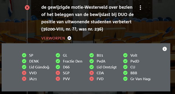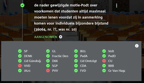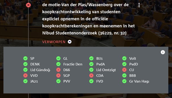 In the House of Representatives, political parties constantly make decisions for or against certain motions and amendments. In the run-up to the general election on 22 November, we took stock of how the parties voted on the issues that affect students.