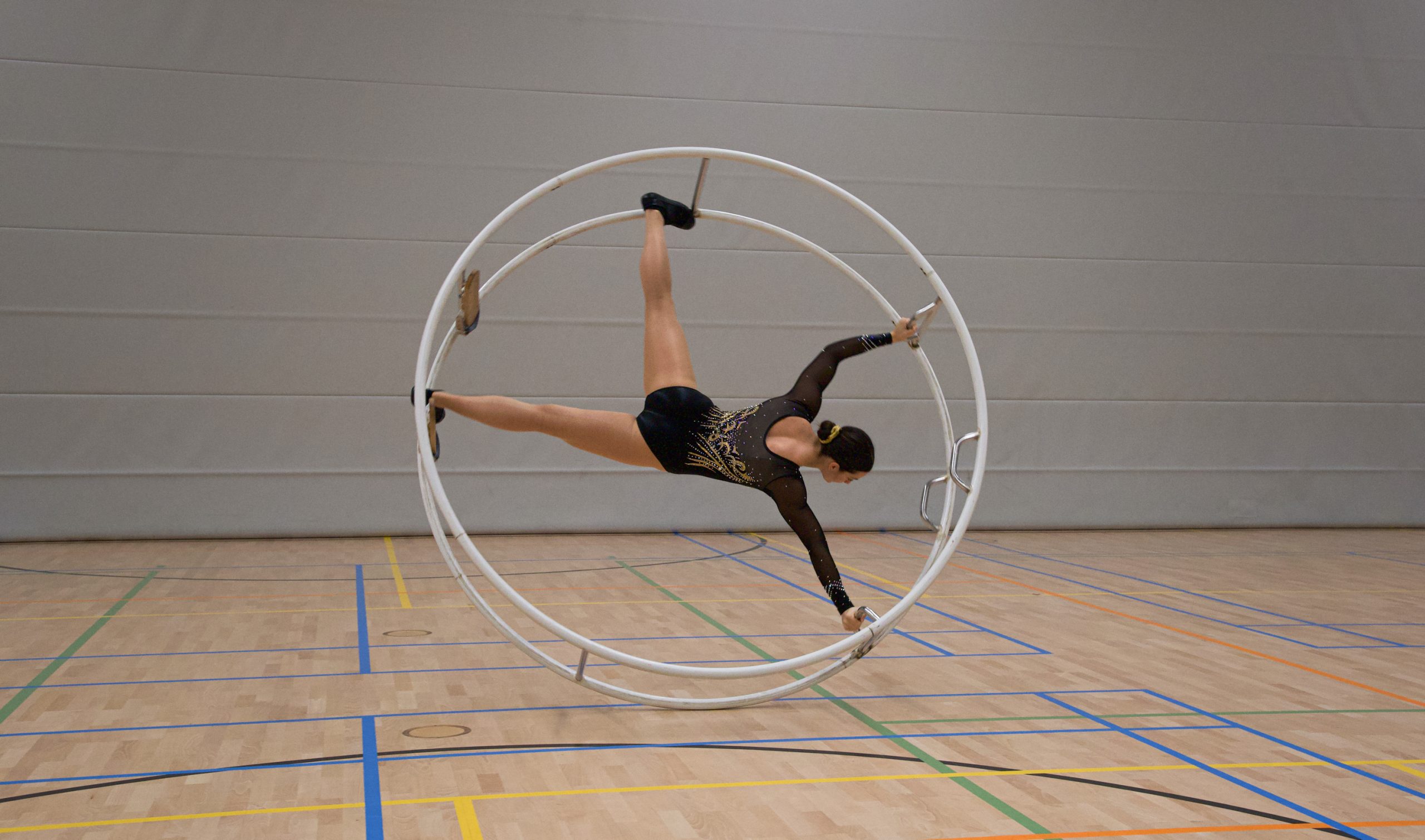 The sport has to deal with misconceptions, given its niche status. “When you say ‘wheel gymnastics’, it doesn’t ring any bells. But once you say ‘I’m inside a big hamster wheel’, they remember they saw it on television once”, she says. Although Marinde explains that it’s also a competitive sport, most people think wheel gymnastics is something they could casually try by themselves.