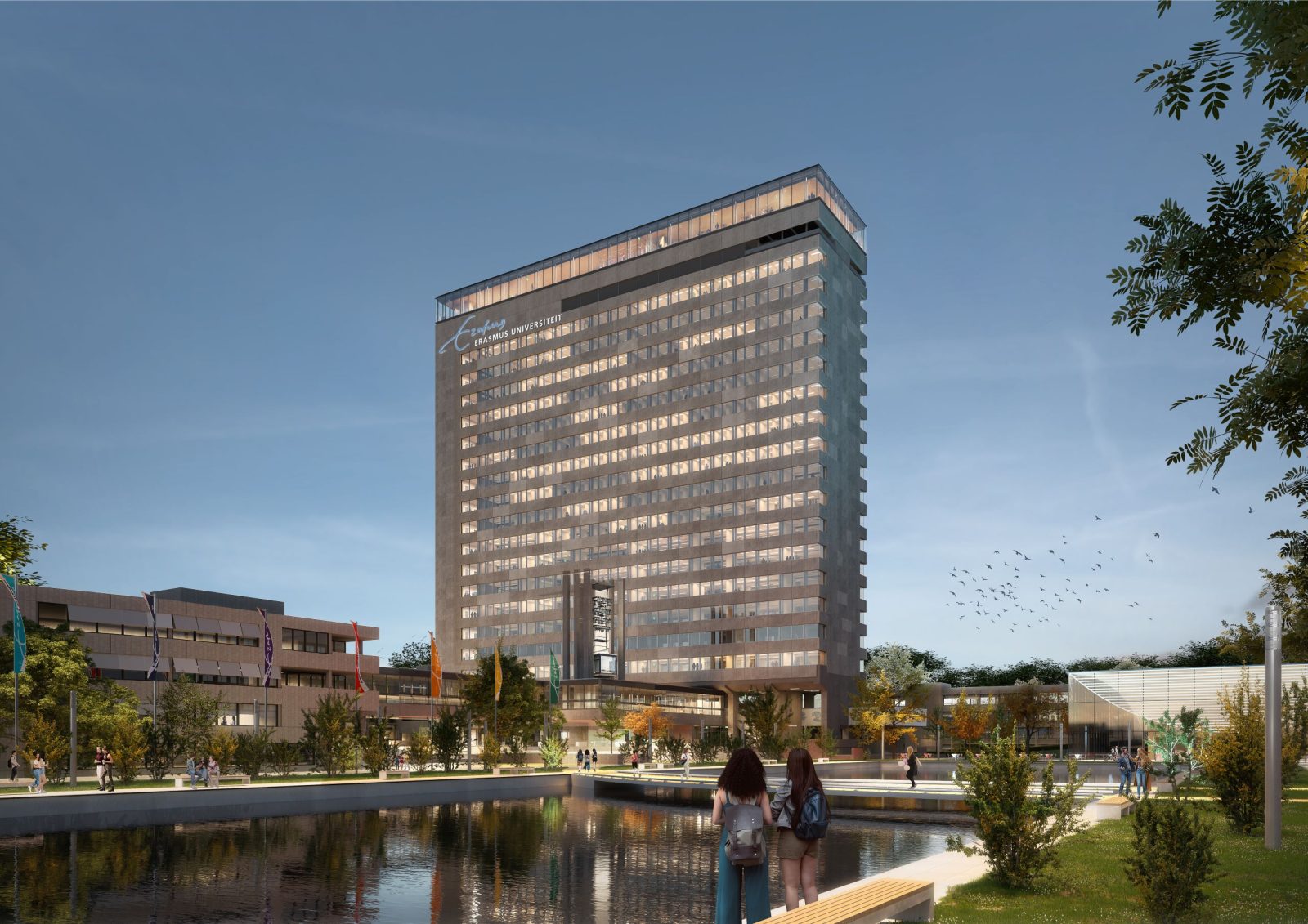 As of the new year, the last two occupants – the editorial office of Erasmus Magazine (EM is moving to the G Building) and the Etude restaurant – have also left the Tinbergen Building. In March, campus visitors will begin to see the first signs of the redevelopment, with barriers being erected and the construction site being set up. A pontoon in the pond in front of the University Library will act as a bridge for construction site traffic. Work will start in earnest in June. The building is scheduled to reopen in 2026.