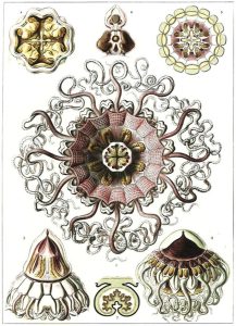 Take one of Bruns’ favourite images from the book: Kunstformen der Natur (1904) by the scientist and artist Ernst Haeckel. Bruns calls the illustration of different types of jellyfish ‘a feast for the eyes’. “In the eighteenth and early nineteenth centuries, animals and plants were depicted symmetrically and without ‘deviation’, as if nature were perfect. Scientists only wanted to depict the typical, essential aspects of a plant or animal. As a result, objectivity in this era was synonymous with an idealised form of nature.”
