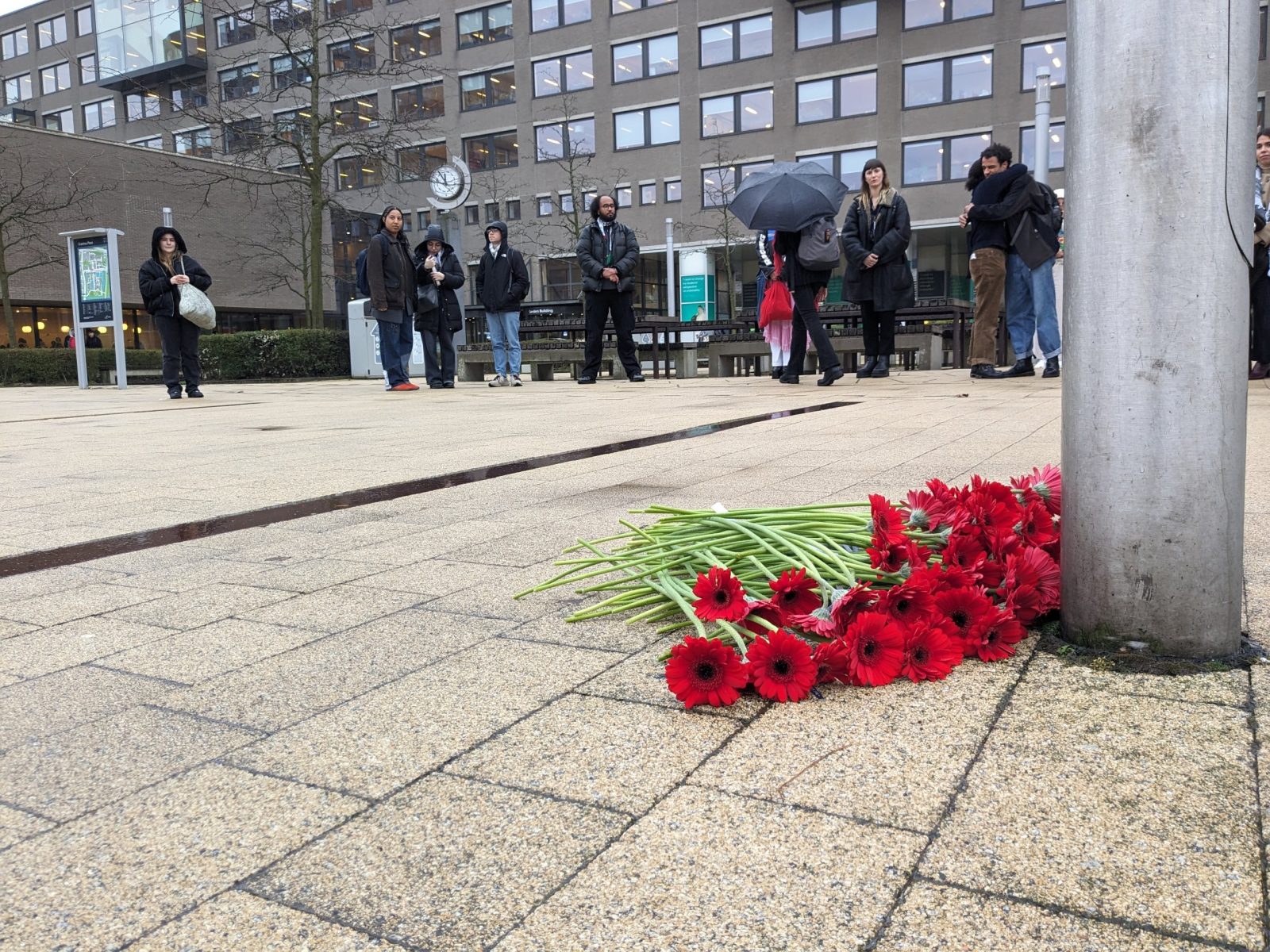 On Tuesday, about fifty staff and students commemorated their Palestinian colleagues who have died as a result of Israeli military violence in Gaza in recent months. They laid a flower for every academic killed on Erasmus Plaza. The commemoration came at the end of a day of action for Gaza.