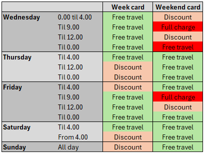 Also good to know: with a weekend card, you can already travel for free from 12 noon on Wednesday (and of course you can also travel all Wednesday with a week card).