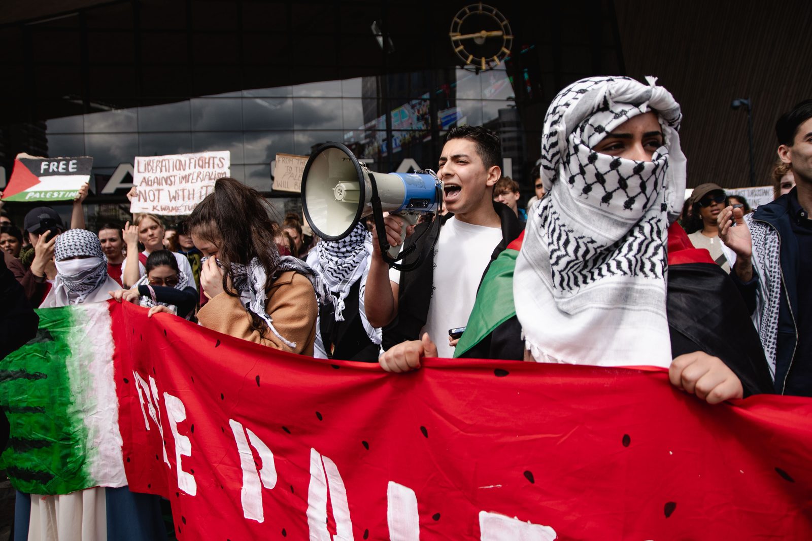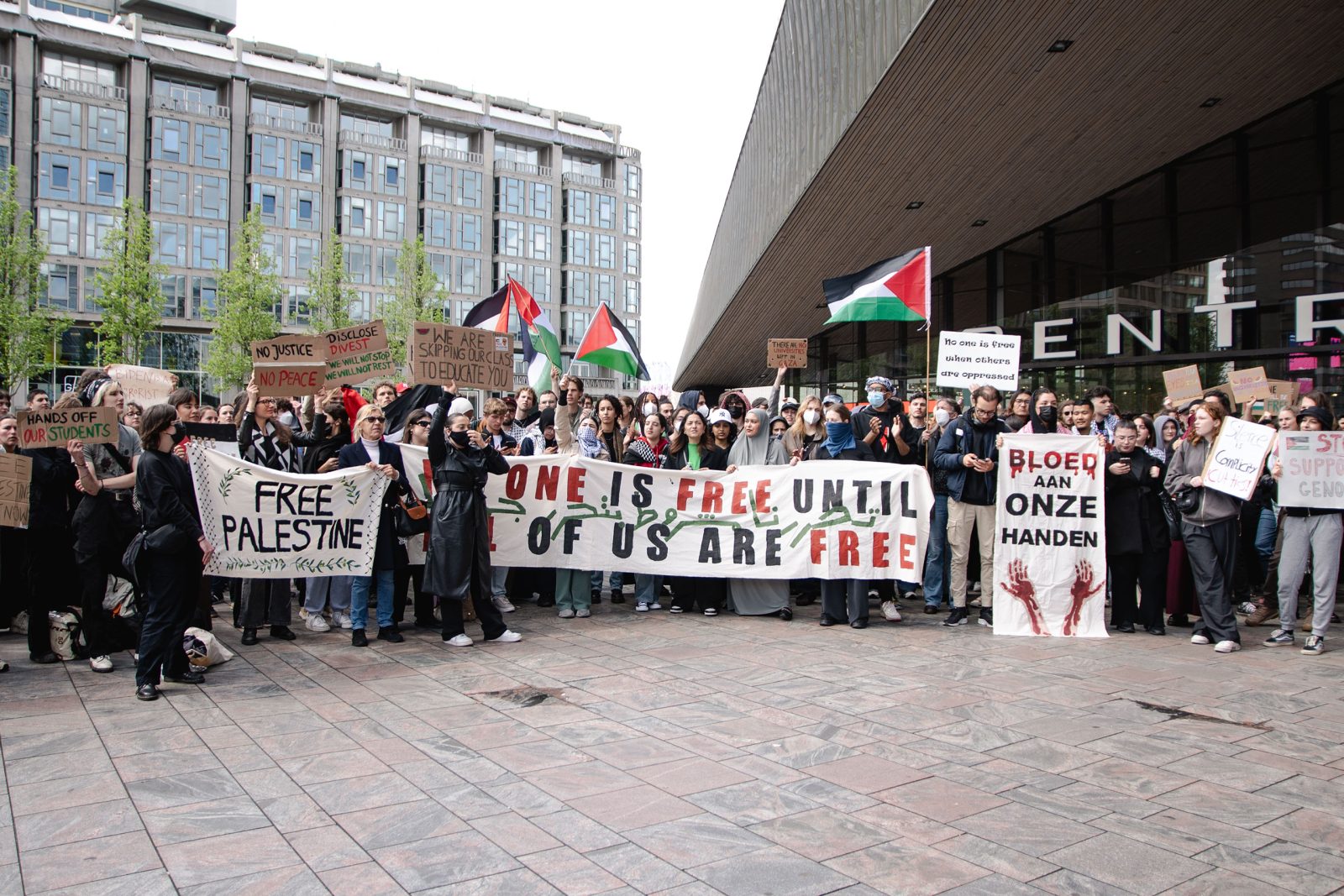Pro-Palestina protest at Rotterdam Central: ‘I would have liked to protest on campus’