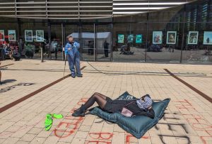 Removing the paint proved to be much harder than the university expected, a spokesperson says. ‘It turned out not to be water paint as we expected. On Tuesday, the cleaner has already spent an hour and a half removing one graffiti.’ The cleaning progresses extra slowly because protesters strategically park themselves on or in front of slogans, so that the cleaner cannot reach them. The university is not intervening as yet, the spokesperson informed.