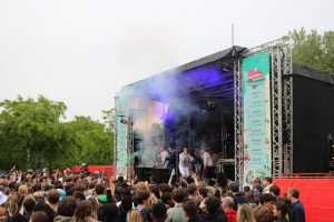 The Erasmus Music Association show band was welcomed at 6.30pm, and joining them to the stage was Christina, this year’s winner of EURvision. With Christina’s encouragement to come closer, people were slowing gathering around the stage. By their last song cover, I will survive, originally by Gloria Gaynor, the space was filled with people dancing and singing along. Anna, a second year Arts and Culture student and member of Erasmus Music Association said: “I’m here to support my boyfriend. He was playing base guitar in the showband and it’s fun.”