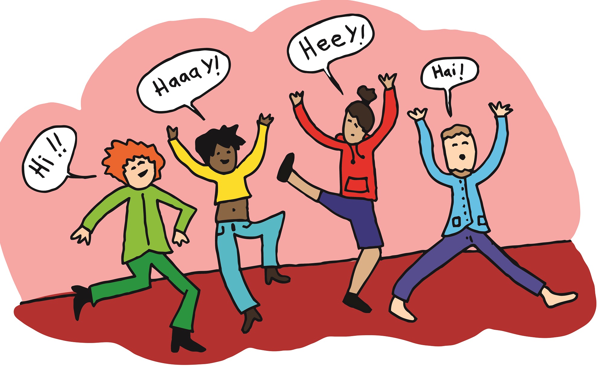 Breathing exercises are followed by more active movements. Birdsong has been replaced by the sound of tambourines. “Jump, as if you were a ball. Explore the room”, says the lecturer. “Don’t think, listen to your body, focus on the movements your body makes.” The pace of the music quickens. “Connect with each other.” The rhythm of the tambourines gets even faster. “Hello”, “Hi”, “Hi, nice to see you.” The students greet each other and look at each other as they bounce around the room like balls. The more dynamic the music, the faster they move.