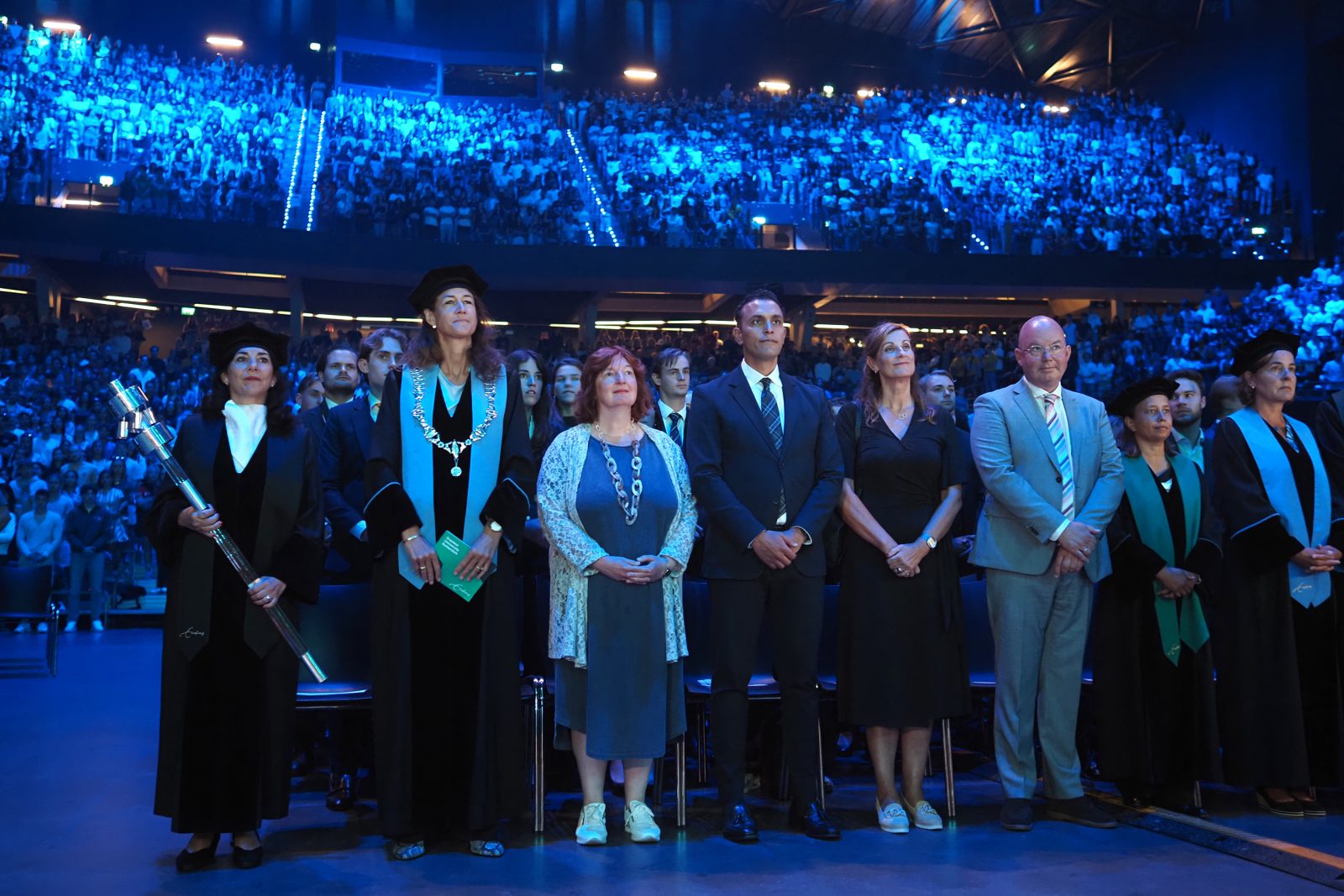 “You’re going to learn what works for you”, Bredenoord told the 5,000 people in the audience. “What works for each person varies, and that’s okay.” She encouraged students to experiment with what suits them. This journey may involve challenges such as ‘failure’, ‘performance pressure’, ‘doubt’, and ‘perfectionism’. If you get stuck, the university offers support, the rector emphasised. “Don’t see it as failure, but as personal growth. In the coming years, you’ll learn more than just what earns you a diploma – although that diploma is, of course, very important.”