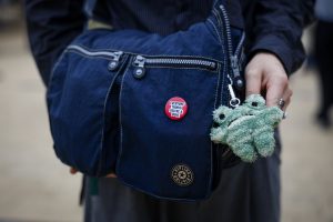 Kevin aims to express a certain intention with his look. No pride means no confidence. By feeling good in his fashion choices, he communicates who he is: extroverted, grungy, and queer. Friends, clothing, and identity are all interconnected. He grew up in Assen: “Being queer is quite a thing there.” During his bachelor’s at Leiden University, he began pushing his boundaries. Friends introduced him to the joys of fashion and challenged him with new accessories. A small, sad frog hangs from his bag, along with a button that reads ‘Everyone thinks you’re a cunt’, both gifts from friends.