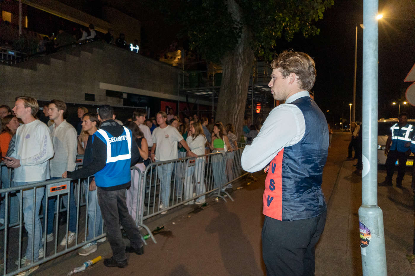 It’s now 10.30 pm, and Willem Ruyslaan is gradually getting busier. The enforcers are certainly not the only ones standing on the association’s pavement. The police are patrolling, the corps has hired security guards, student stewards from the Safe Cities Foundation are present, and the association’s board is walking around addressing students.