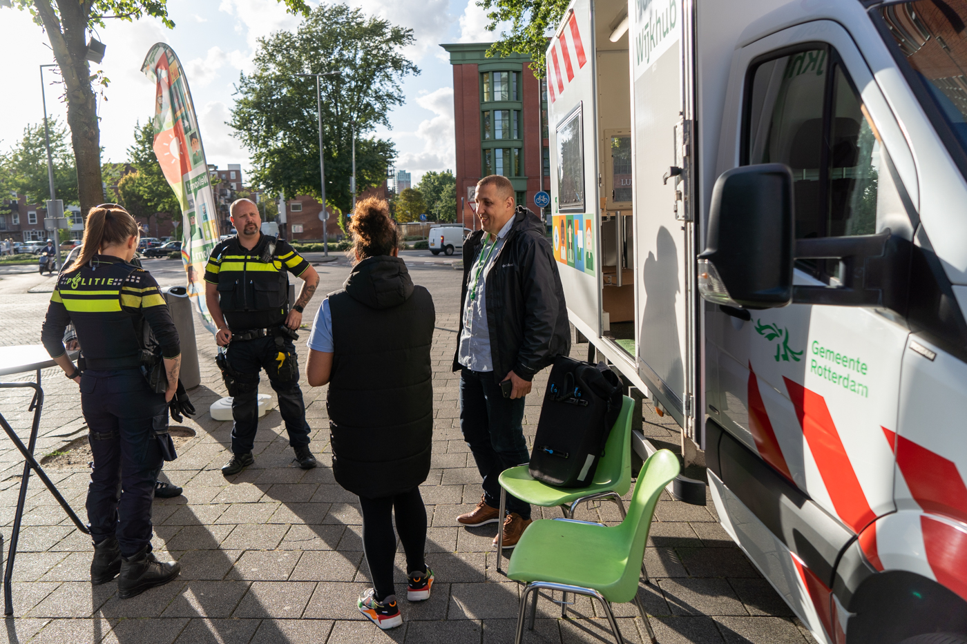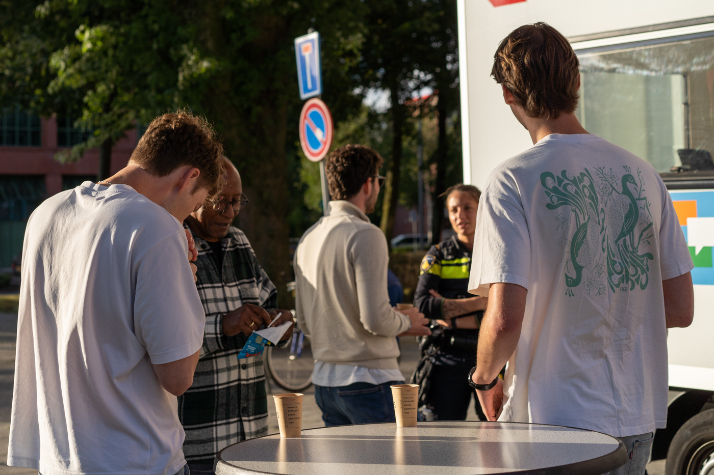 Every year, the number of complaints about student nuisance peaks during the introduction week, especially in Kralingen-Oost, explained Cherif Jeffali earlier in the evening. He is a neighbourhood networker for the municipality of Rotterdam. Together with colleagues from the municipality and the police, he mans a mobile neighbourhood hub on Lusthofstraat. All topics are open for discussion, but conversations these days are steered towards students. Students are also asked if they know their neighbours. “Last year, we had a lot of complaints because the introduction coincided with the first week of school. Parents then certainly want their children to sleep well. This year, there are fewer complaints.”