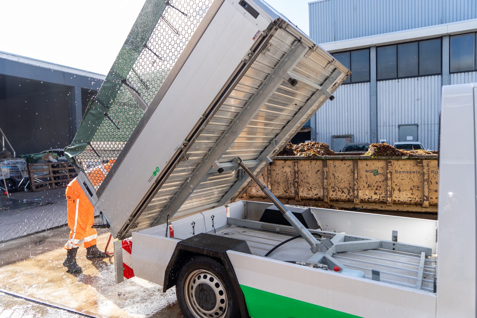 • Back on Boslaan, the rubbish trucks are getting a scrub. They not only want the streets to be clean, but also their own equipment.