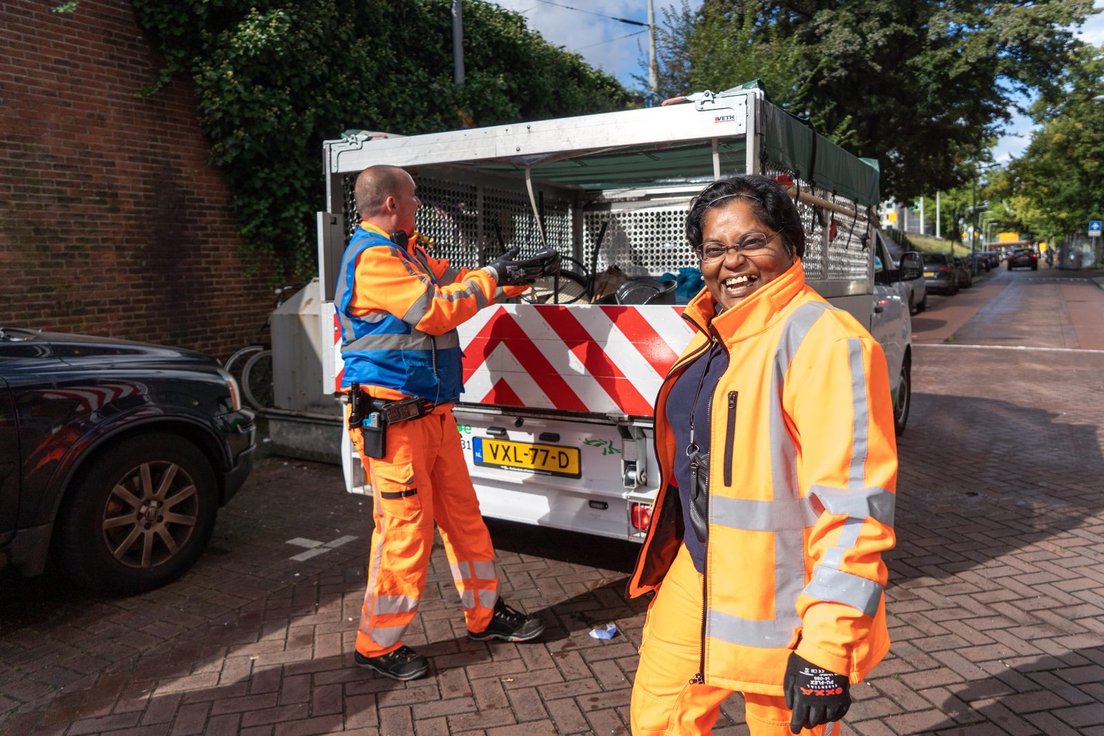 In the same system, he sees a report for the pile of bulky waste on Lambertusstraat. Rosa (“is a surname really necessary?”) and Remco, bulky waste inspectors, go to check it out. Since most of Lambertusstraat is currently under construction, the large truck can’t access the area. From their base on Boslaan, they head out in smaller vehicles. The broken chair, the long dried vegetable from Suriname (Rosa recognises it immediately), and more rubbish behind the container opposite the street are all taken away. The mattress, slatted frame, and other items on the street under construction will have to wait for the large rubbish truck.