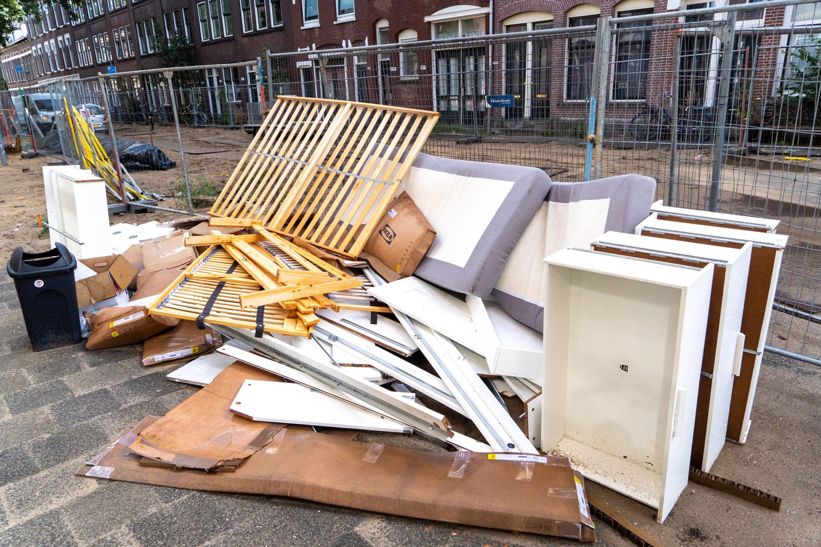 It’s like an anti-advert for IKEA. In the middle of Lambertusstraat, there are mattresses, bed slats, drawers, and a bed frame. The cardboard boxes are already completely soaked. You can’t always be sure, but it strongly looks like dumped waste from a student house, says Wim van Tiggele, manager of the Neighbourhood Cleaning Team in Crooswijk and Kralingen. “In the past, students often had old furniture from home or family, but now we mainly see new items from IKEA.”