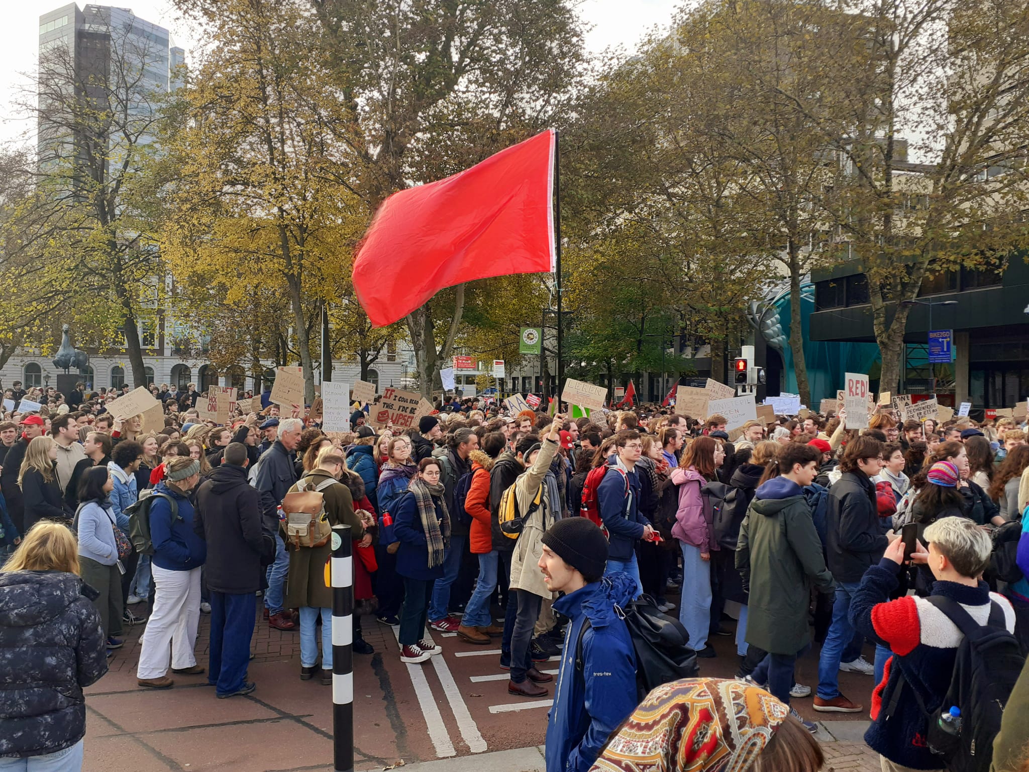 An earlier protest in Utrecht on 14 November was cancelled over fears of pro-Palestinian rioters. Students still took to the streets, and no incidents occurred. Bas van Weegberg (FNV) insists that governments should keep their ‘hands off’ the right to protest. He emphasises that this right is equally important ‘for those pleading for peace in Gaza, where no university is still standing’.