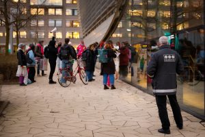 Thirteen protesters gathered at 6.00 pm on Friday evening on the Plaza, in front of the entrance to the Pavilion. “Get Shell out, and we go!”, they shouted at the top of their lungs. Inside the Pavilion, study association STAR was holding a wine tasting, an orientation evening for master’s students, sponsored by Shell and featuring speakers from the company.