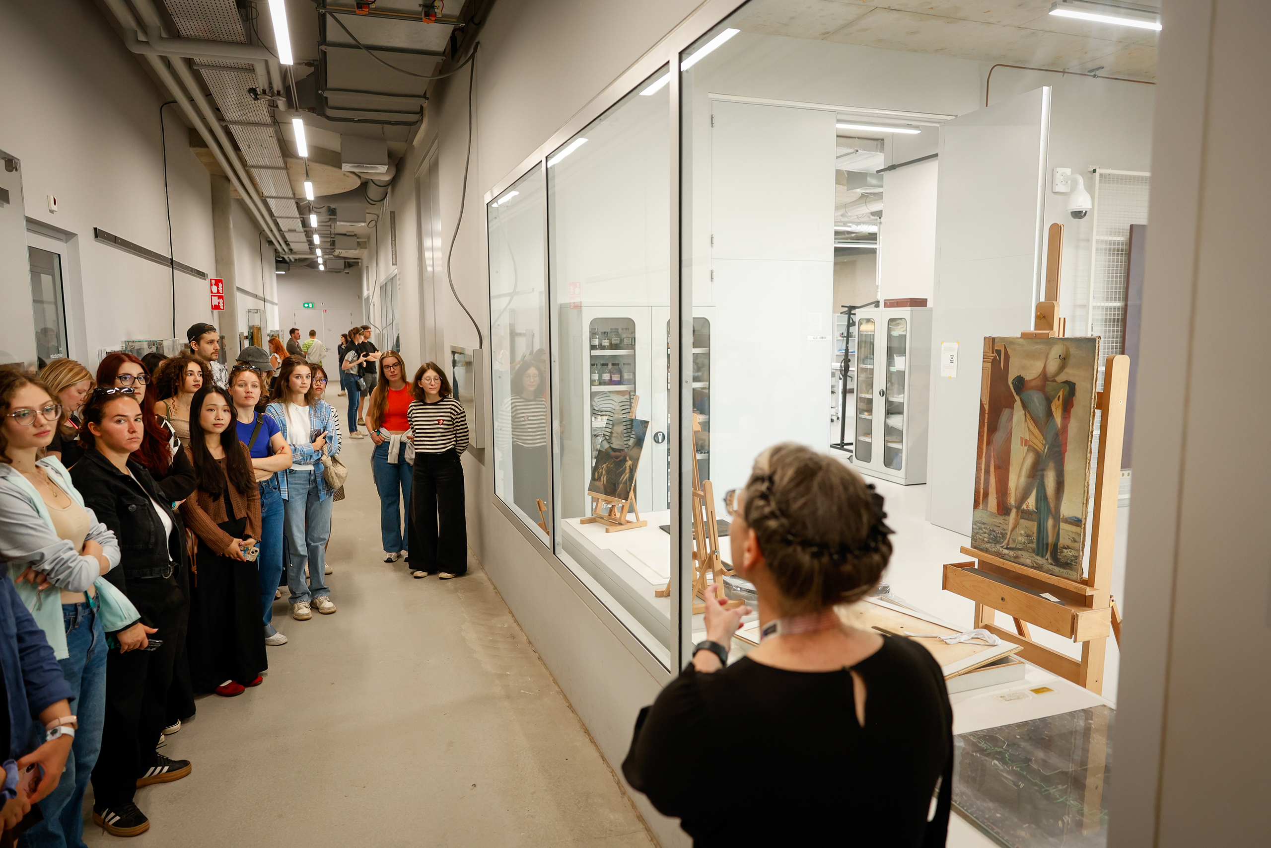 This building is not really a museum, explains museum teacher Leonie. “It is a storage facility, a depot, where you can look at art. The people behind the glass are not actors. They are working here, for example on the restoration of paintings.” When it becomes clear that one of the paintings in the restoration room is a Van Gogh, all the phones come out again. “The paint was coming off”, says Leonie. “That is the last thing you want with a painting – and certainly not with a Van Gogh.”