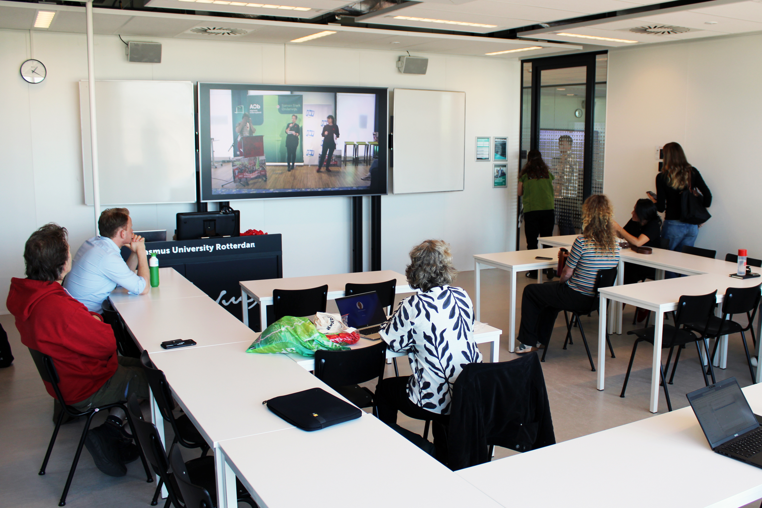The alternative opening took place in The Hague, but it could be watched via a livestream from 13.00 to 14.00 in a small hall in Langeveld. Nine people watched as LSVb chair Maaike Krom gave her speech. Krom says she still cannot believe there are political parties that have again included a slow-progress penalty in their election programme. “Don’t lose hope”, is her message. She sees a lot of positive movement, for example many students who are willing to demonstrate. “Get involved. Don’t be afraid, stand together, take to the streets”, she urged.