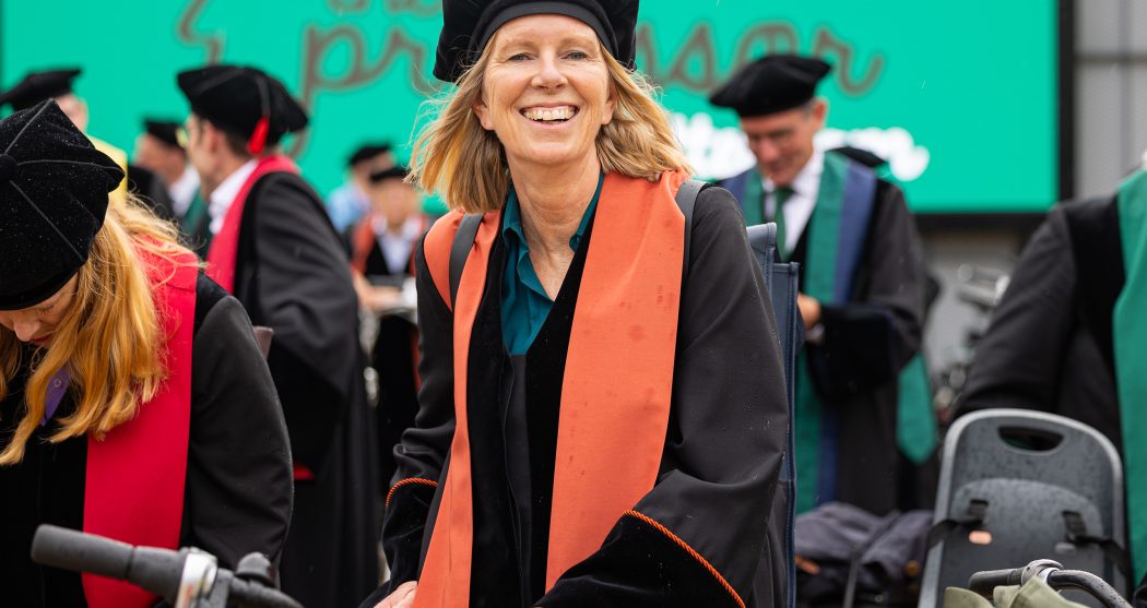 “You can call the university about the five impact domains. These are the areas in which we have traditionally always been very strong, internationally recognisable, in both teaching and research, and in which we intend to become even more proficient in the years ahead. And these domains are … wait, I wrote them down here, so I can tell you exactly what they are: the resilience & robustness of our society, sustainable entrepreneurship and inclusive prosperity. The third is a just transition to a sustainable society. The fourth: a healthy society with accessible and affordable health care. And five, the responsible use of technology, including artificial intelligence and digitalisation. EUR needs to be people’s preferred knowledge partner where these five themes are concerned.”