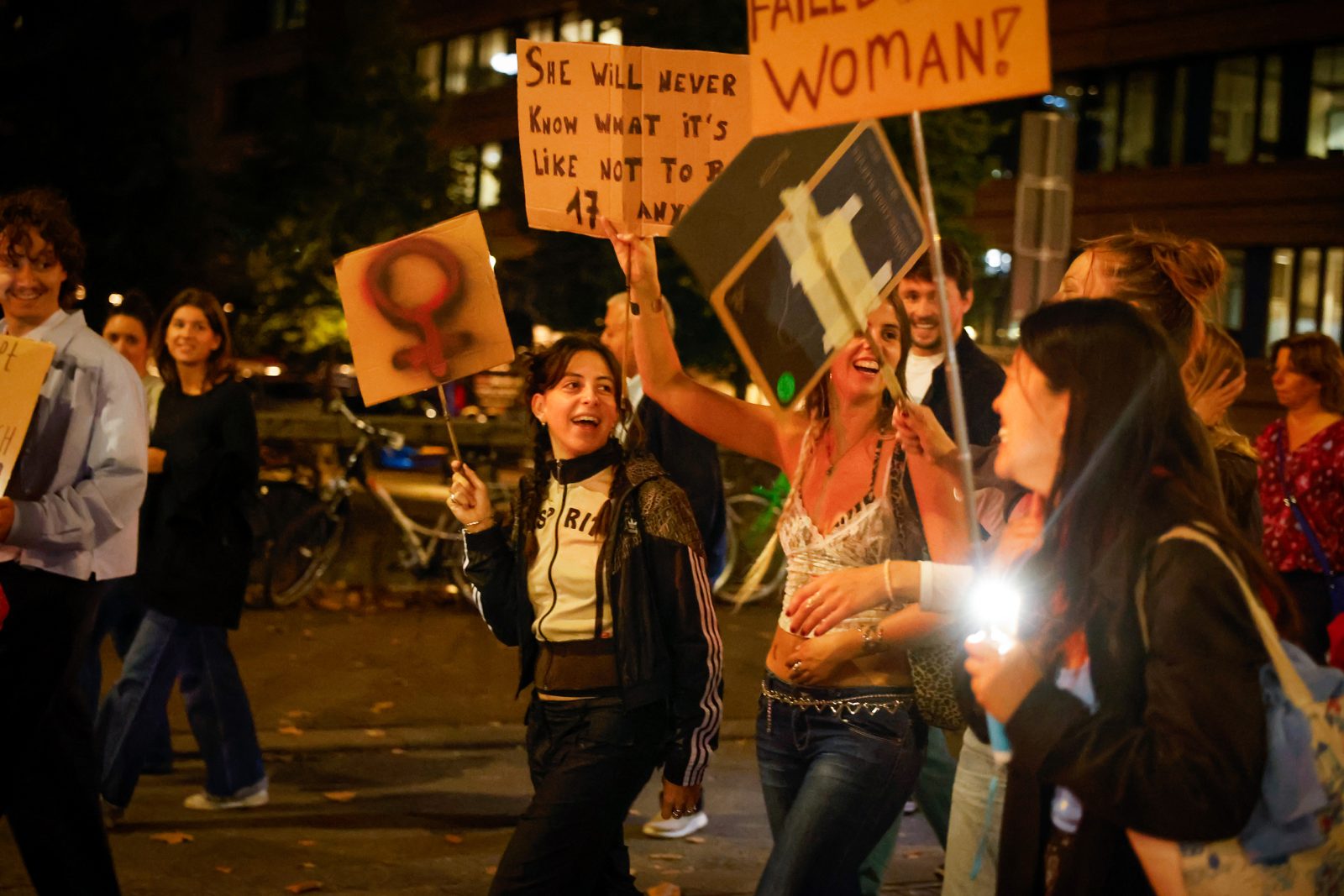“I damn well want Lisa back. I want Bouchra back. I want Clarinda back. And Wendy. And Shamila. And Paro. And Zehra. And Gea. Nadine, Sanne, Joeweela, Mala, Laura, Annemiek, Eva, Jolanda, Shelly, and Linda back.” With every name the The Hague alderwoman Marielle Vavier lists, the crowd gets more goosebumps. “The anger we feel is intense and that anger is justified.” Her voice breaks occasionally. The applause of the hundreds of demonstrators rings out loudly in The Hague. “Our bodies are ours. Our lives are ours. The streets are ours. The night is ours.”